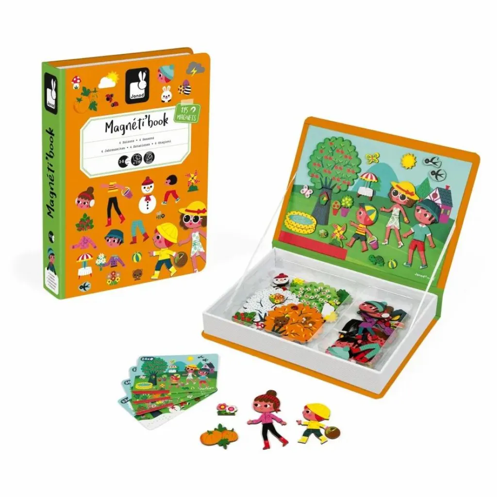 - Magnétique, Le but du jeu est de recomposer la scène indiquée sur la carte à l’aide des magnets pour comprendre les différences entre chaque saison, Jeu de construction, Aide à développer l’imagination