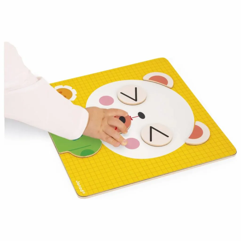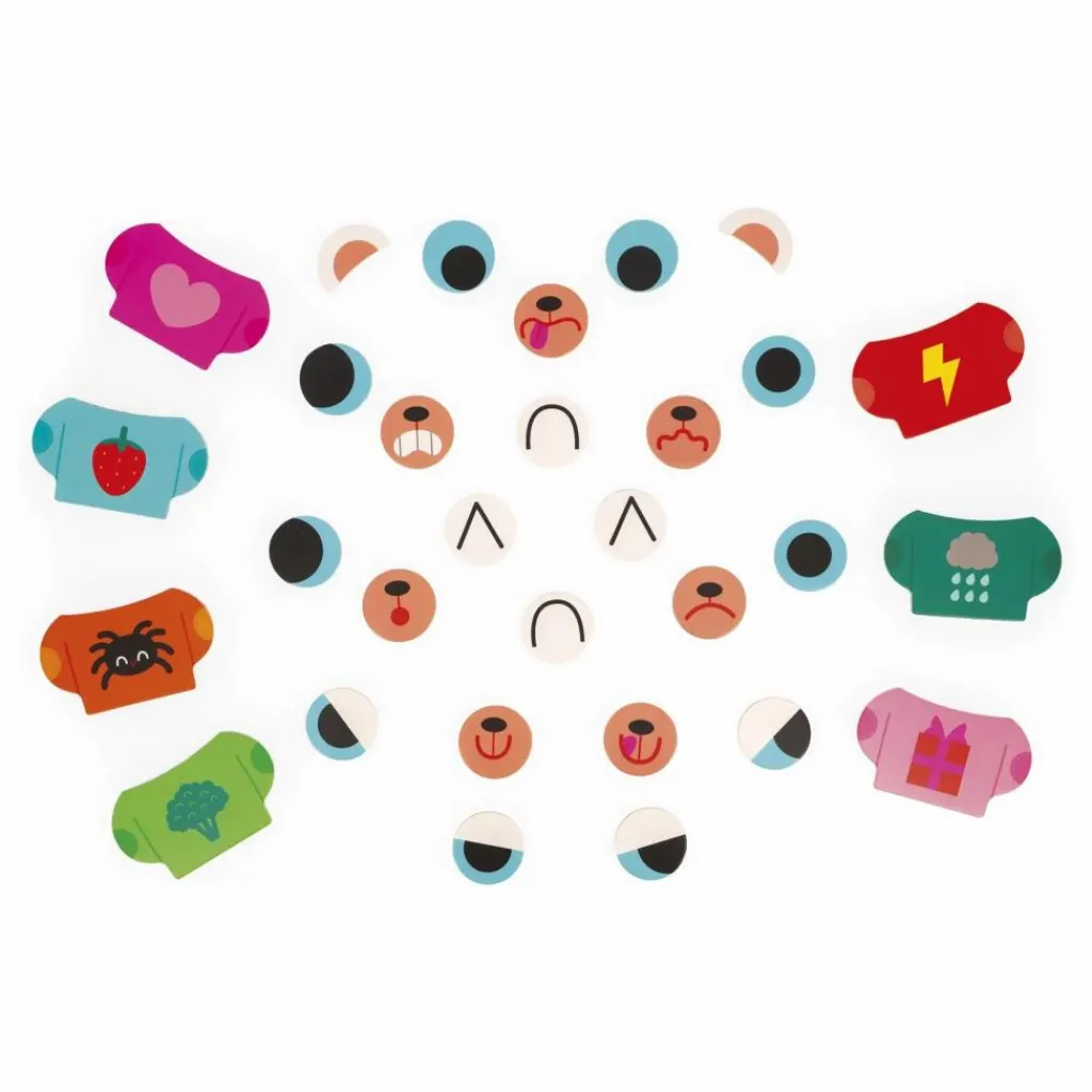 - Ce matin Teddy est tout grognon, mais que se passe-t-il ? Pour un enfant, les sentiments peuvent être complexes à exprimer. Grâce à ce jouet, votre enfant apprendra à identifier 7 émotions (joie, amour, colère..) qu’il pourra reproduire avec les cartes. Il pourra alors les nommer et les exprimer. Parfait pour accompagner parents et enfants à mieux s’exprimer et développer le langage à travers un jouet ludique et éducatif. Contient un plateau en bois et ses 30 magnets, ainsi que 7 cartes modèles. Jouet magnétique en bois FSCTM, pour les enfants à partir de 2 ans.