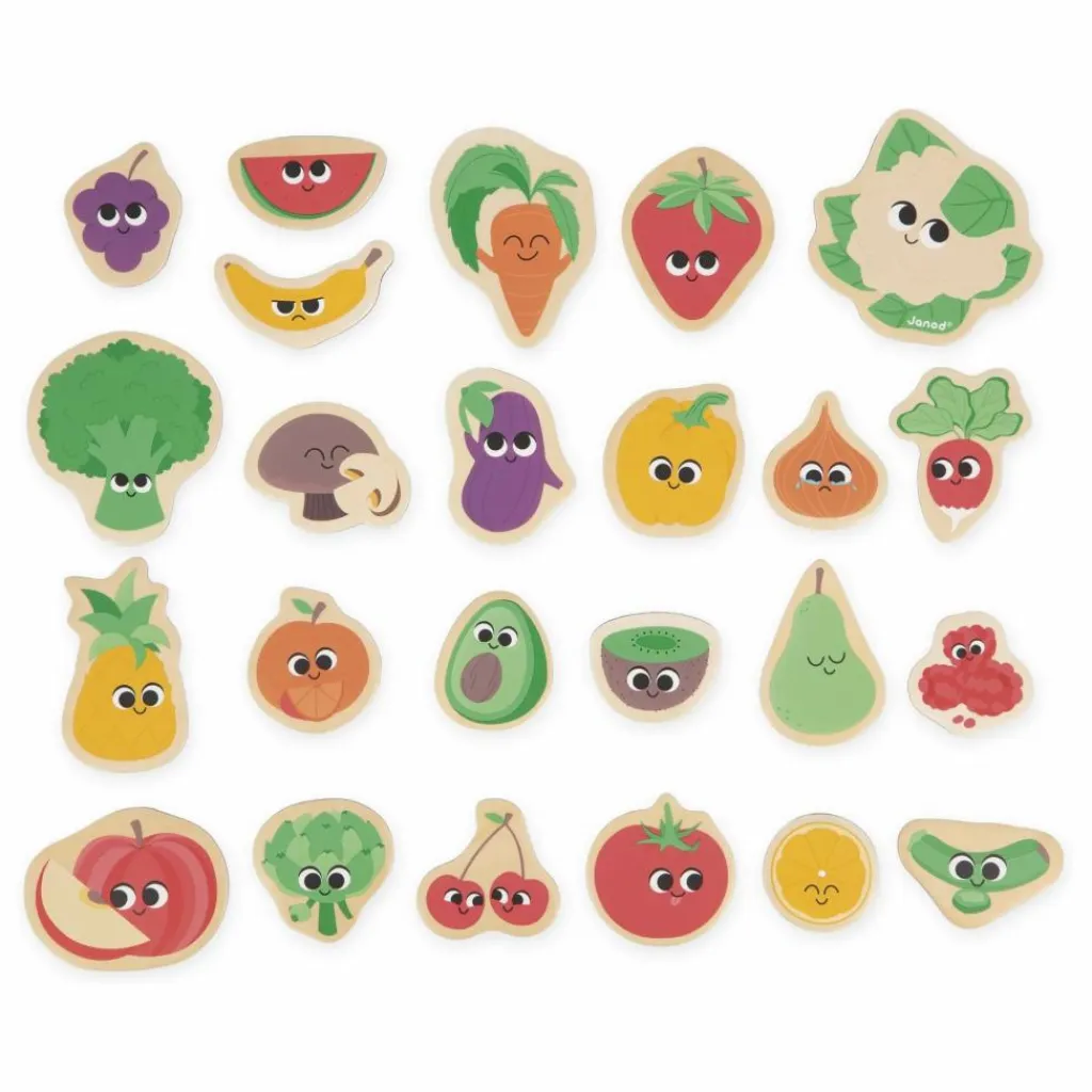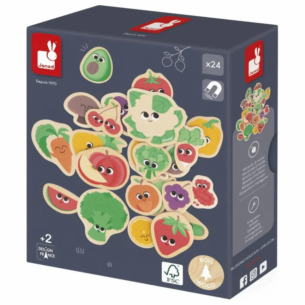 - Vous avez tout sous la main pour préparer une bonne salade composée ! Fruits et légumes, aidez votre enfant à les reconnaître et à les associer ! Ce set est composé de 24 magnets en bois pouvant être positionnés sur des tableaux magnétiques, ou toute autre surface aimantée. Votre enfant pourra développer son imagination et sa motricité fine tout en s’amusant. Jouet magnétique en bois FSCTM pour les enfants à partir de 2 ans.