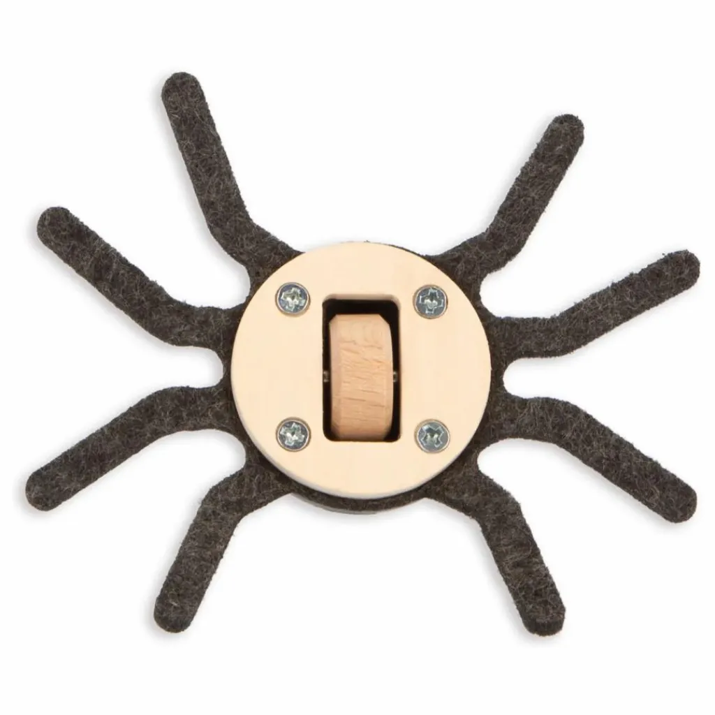 - 1 looping, 1 araignée, 7 pièces à encastrer, 3 miroirs, 1 roue qui tourne avec des perles dedans, 1 labyrinthe et 6 pièces à déplacer, 3 engrenages, 4 pièces en bois à faire tourner, 1 feuille en feutrine qui tourne, 1 coccinelle sonore