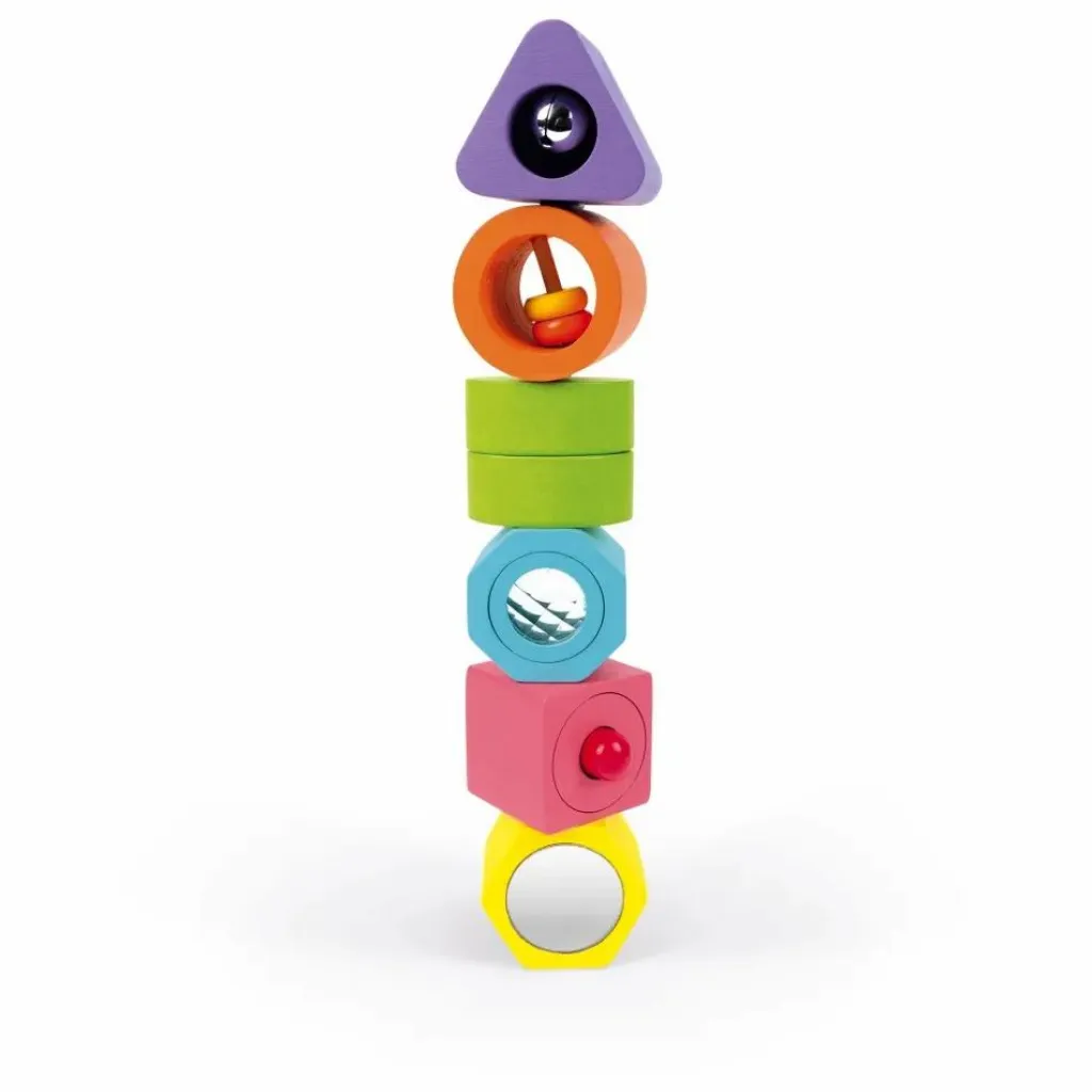 Ce puzzle sensoriel est idéal pour aider à développer la motricité fine de votre enfant. Les 6 cubes ont une forme, une couleur et une fonction différente pour offrir à votre enfant un expérience sensorielle complète.