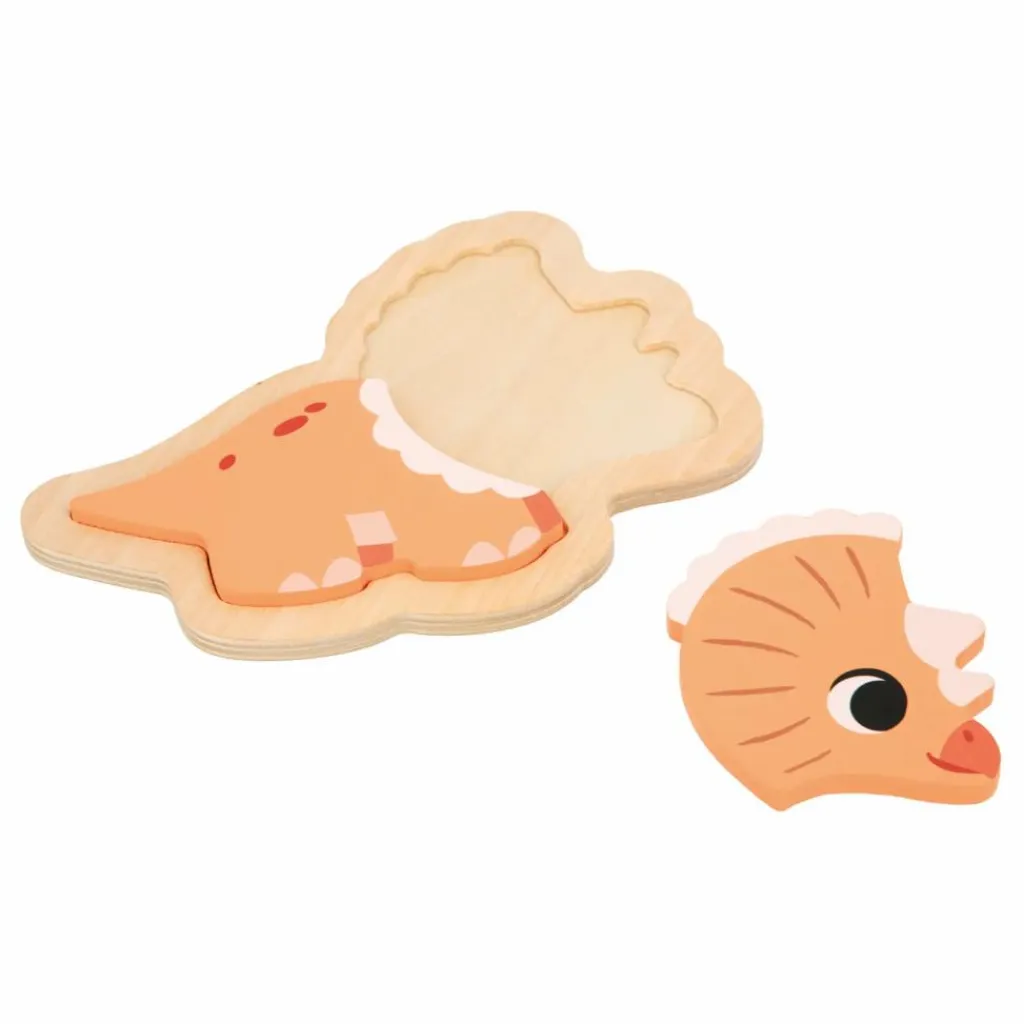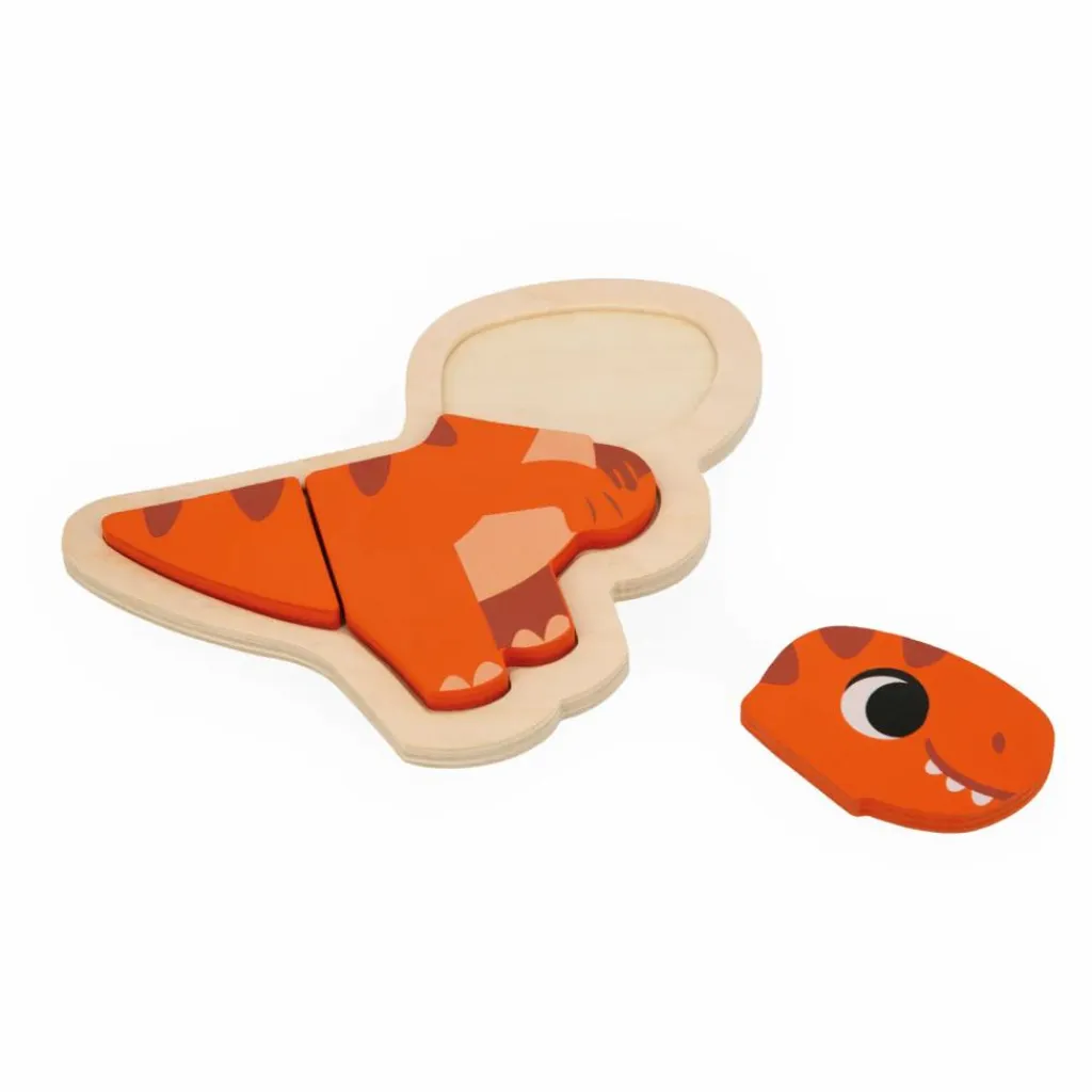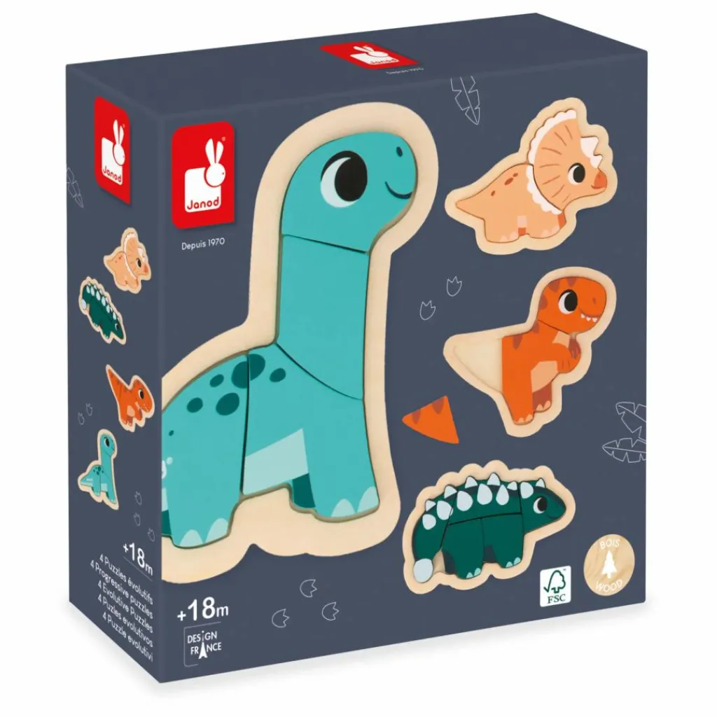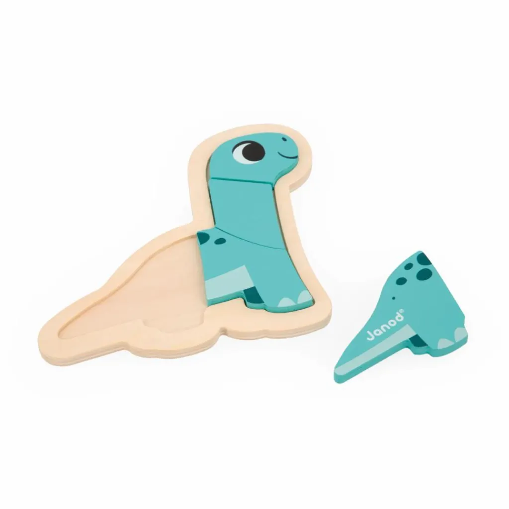 Ce puzzle d’éveil est idéal pour développer la dextérité de votre enfant. On commence par proposer aux enfants le puzzle de 2 pièces puis quand c’est maitrisé on peut aller jusqu’à 5 pièces en montant en difficulté. Redonnons vie au tricératops de 2 pièces, au T-Rex de 3 pièces, au diplodocus de 4 pièces, et à l’ankylosaure de 5 pièces. Pour faciliter ce jeu premier âge, les pièces de puzzle en bois tiennent sur 4 socles.