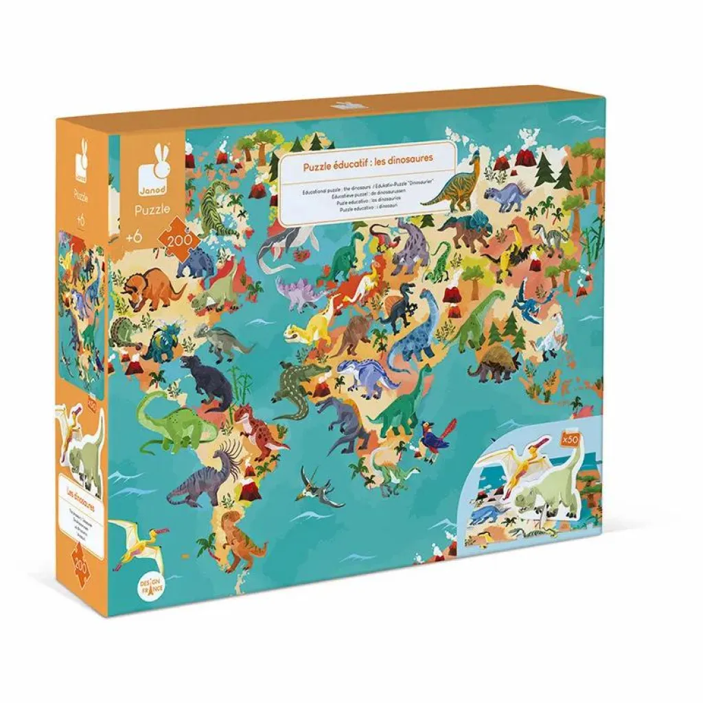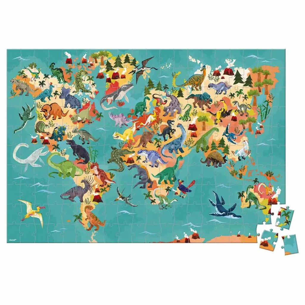 Réalise le puzzle qui compose la carte du monde, tu peux alors construire les différentes espèces de dinosaures sous forme de figurines et les aider à regagner leurs environnements respectifs en les plaçant sur la carte.