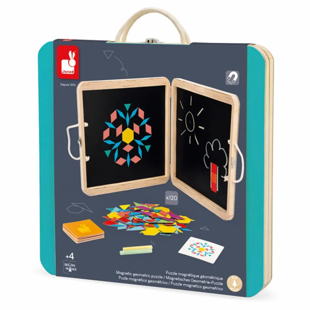 Laissez-vous embarquer dans le monde des formes géométriques avec ce magnifique puzzle magnétique. Facile à transporter grâce à sa poignée, ce jouet permettra à votre enfant de développer sa créativité et sa dextérité.