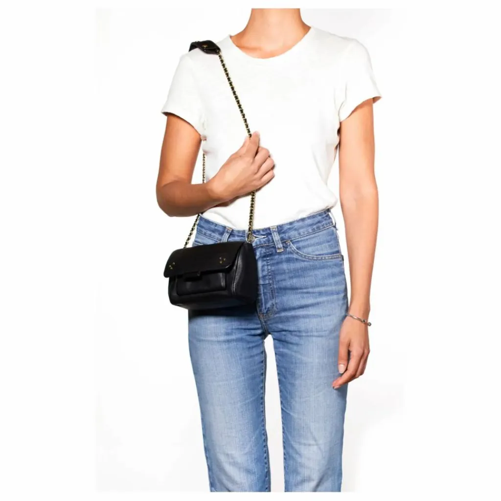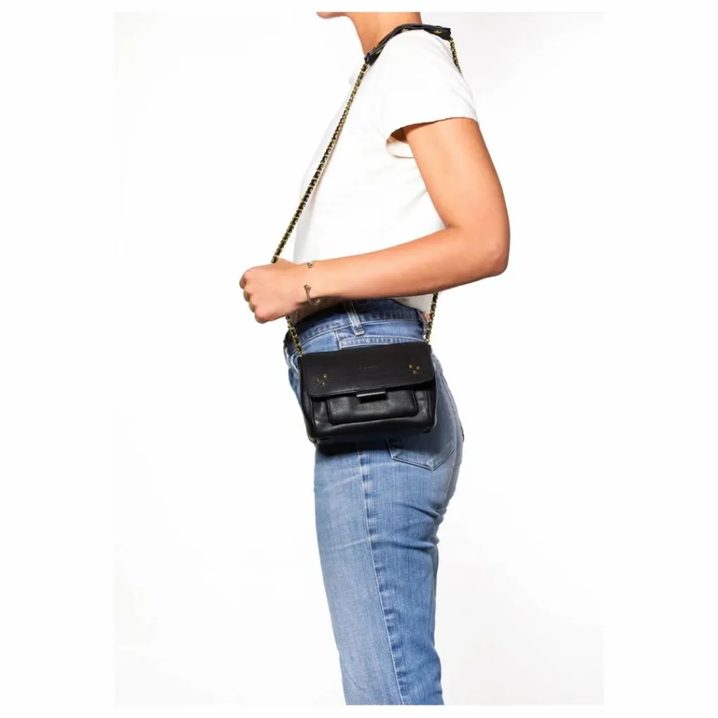 - Mini sac en cuir, porté épaule ou croisé. Bandoulière chaîne et cuir, amovible et ajustable. Rabat avec fermeture aimantée.