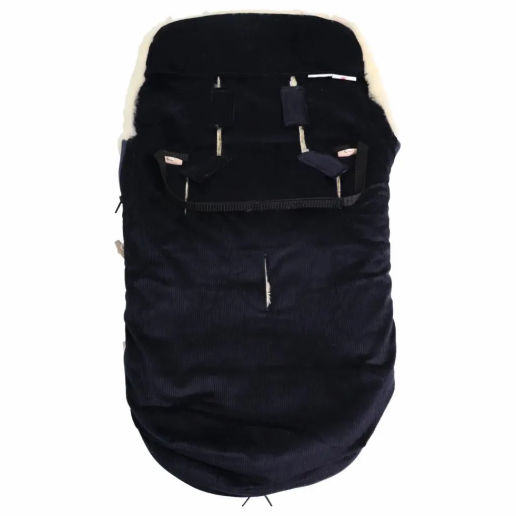 - Tête boutonnable en chapeau à l’aide d’un bouton en bois, Rabat en peau repliable, Protection contre la saleté dans la zone des pieds. 2 fermetures à glissière à double sens, ouvertes sur la partie du pied, Sangle de fixation supplémentaire dans le dos pour un meilleur maintien, fixation simple pour tous les systèmes de ceinture à 3 et 5 points.