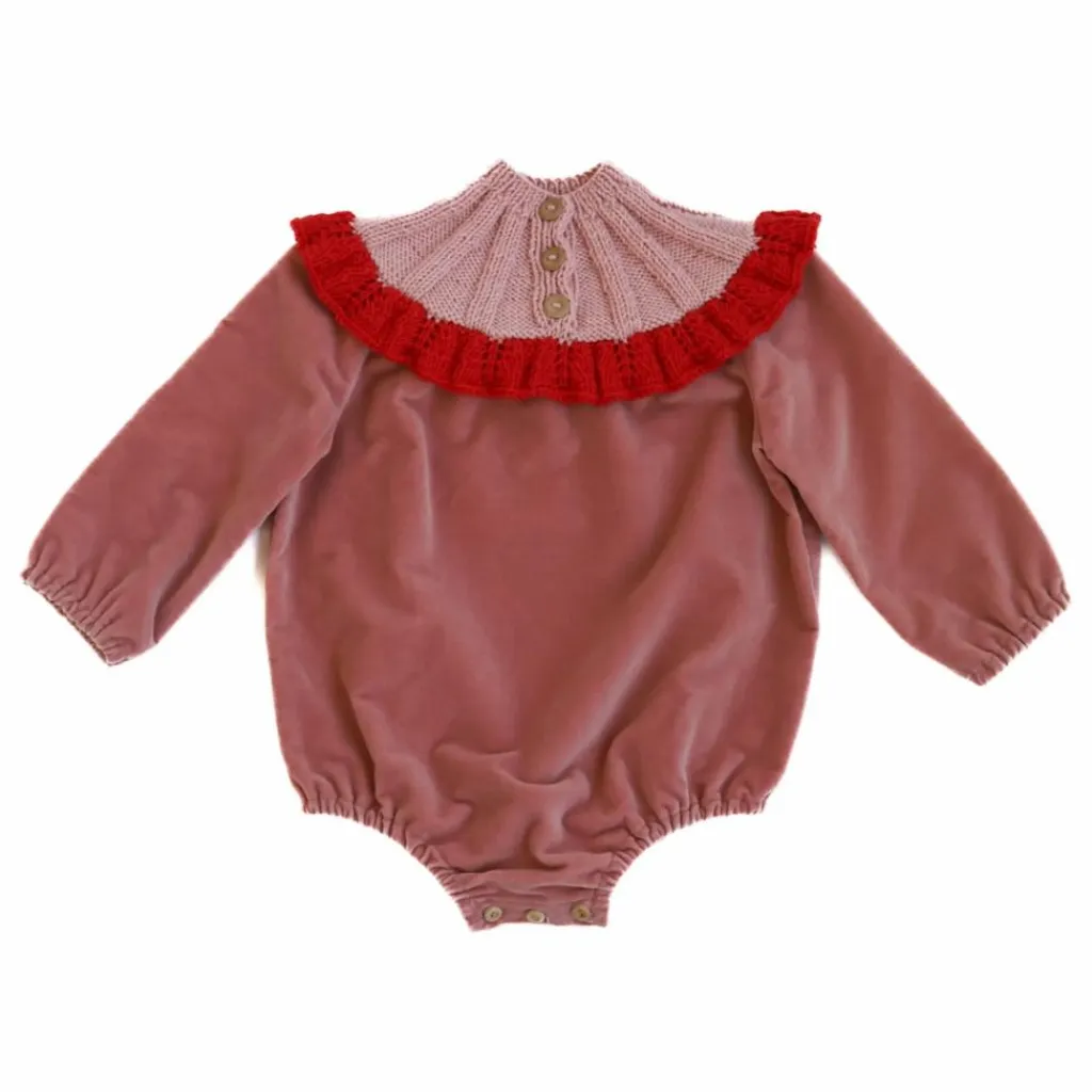 - Sidra est une luxueuse barboteuse en velours qui allie élégance et charme artisanal. La grenouillère présente une partie supérieure tricotée à la main qui se termine par de légers volants, ajoutant texture, chaleur et une touche artisanale unique. Conçue dans un souci de confort et de style, elle est parfaite pour les occasions spéciales ou pour être portée tous les jours par votre enfant. Boutons en bois sur le devant.