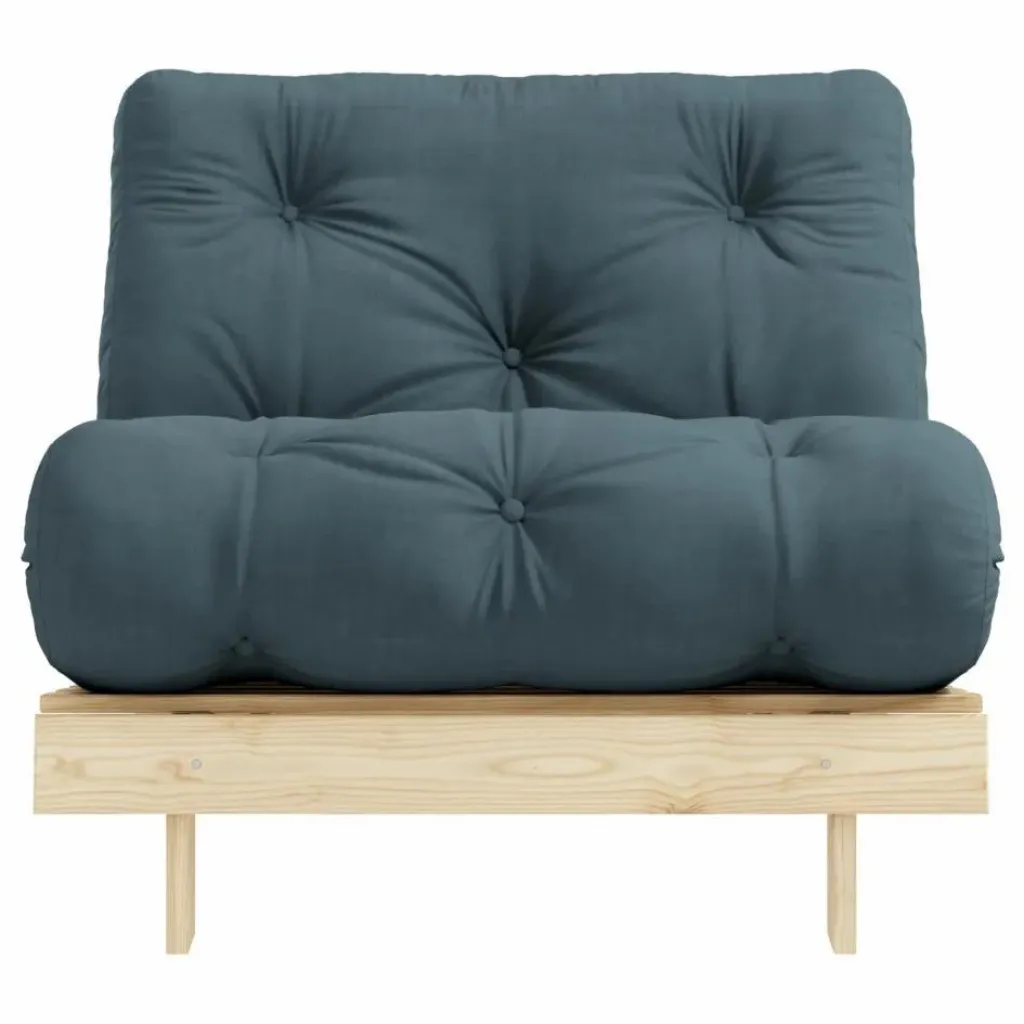 Ce canapé Roots se transforme aussi bien en lit qu’en chaise longue confortable. En abaissant les pieds avant et en ajustant le dossier, vous obtenez une chaise longue confortable. En abaissant complètement le dossier, vous obtenez un lit agréable. En doublant le dossier, en rabattant le matelas, vous obtenez une chaise longue de hauteur normale.