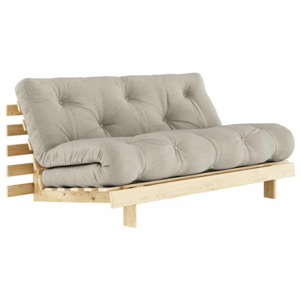 Ce canapé Roots se transforme aussi bien en lit qu’en chaise longue confortable. En abaissant les pieds avant et en ajustant le dossier, vous obtenez une chaise longue confortable. En abaissant complètement le dossier, vous obtenez un lit agréable. En doublant le dossier, en rabattant le matelas, vous obtenez une chaise longue de hauteur normale.
