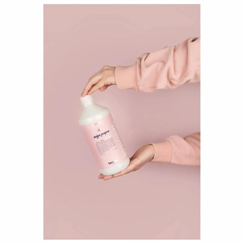 Inspirée du souvenir du parfum des lavomatic et de la senteur particulière du nettoyage à sec dans les pressings, Méga Propre diffuse des notes de tête poudrées avec un cœur floral rosé, sur un fond de cèdre légèrement ambré.