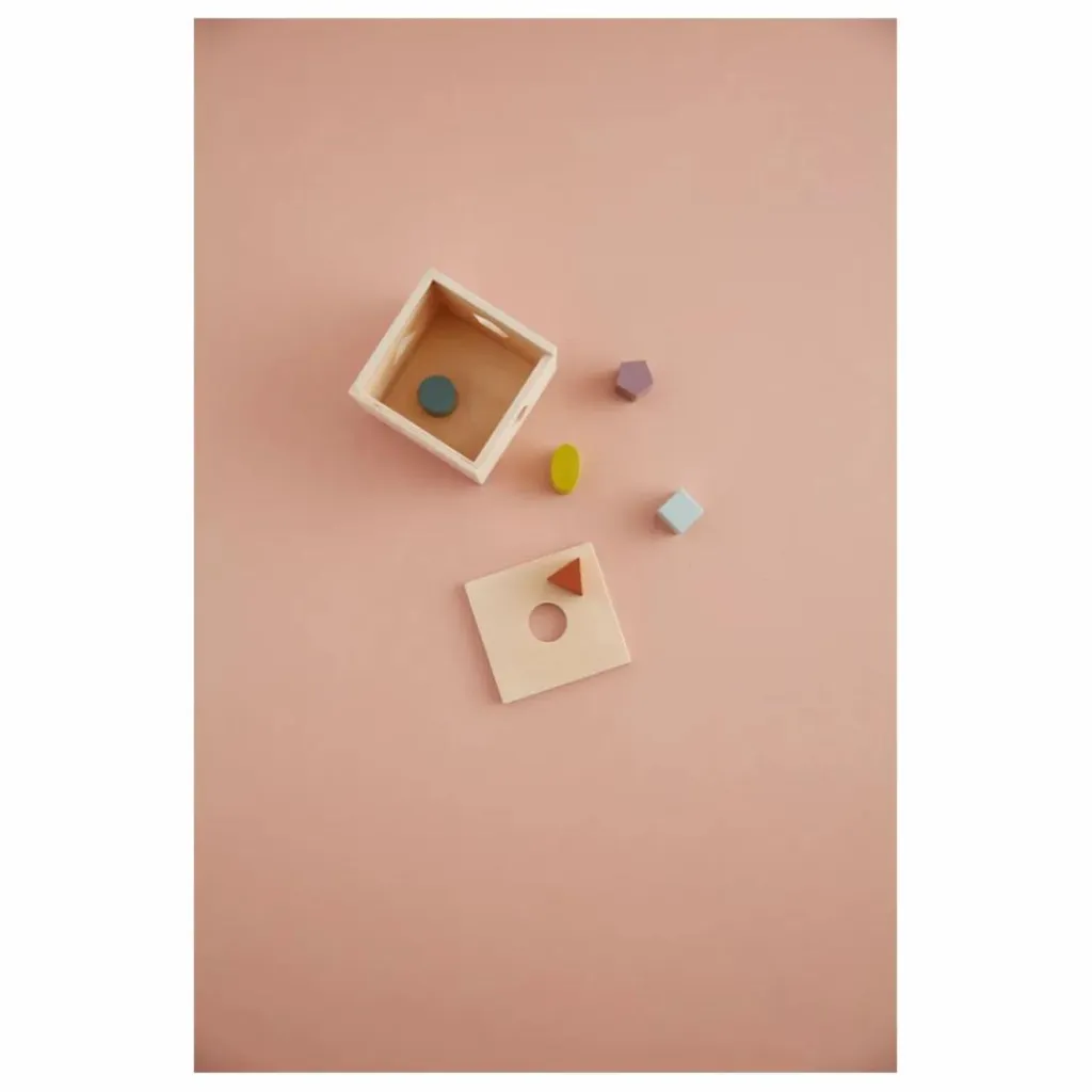 - Cette boîte à formes en bois naturel, avec cinq pièces de formes différentes, est un jouet classique qui encourage l’apprentissage des différentes formes géométriques et aide à développer la motricité fine et la coordination. Quand le bébé a réussi à placer tous les formes dans la boîte, tirez le couvercle coulissant et retournez la boîte pour la vider et recommencer. Les différences de couleur dépendent de la transparence de la teinte sur le bois.