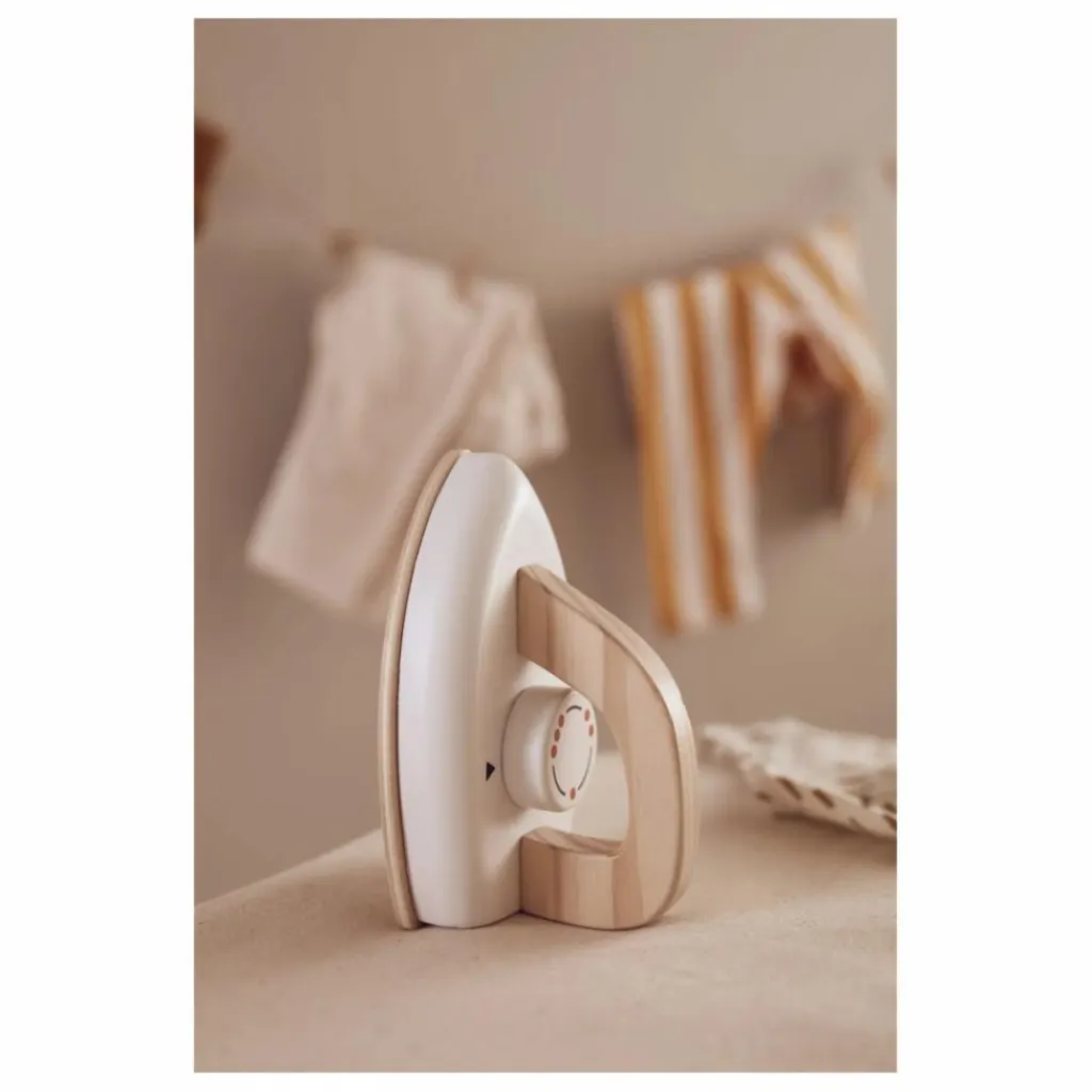 Cet ensemble pour repasser en bois permet aux enfants d’imiter leurs parents tout en s’amusant. Le bouton du fer à repasser émet un clic et peut être tourné. La planche est pliable et facile à ranger lorsqu’elle n’est pas utilisée.
