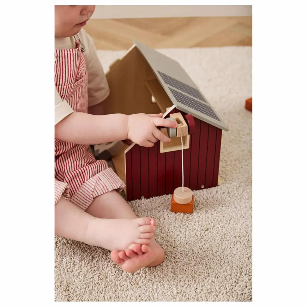 - Embarquez pour une joyeuse aventure à la ferme, avec cette ferme en bois sur deux étages ludiques. La maison comprend une porte coulissante, des fenêtres découpées et des panneaux solaires éco-énergétiques sur le toit pour jouer en utilisant une énergie renouvelable. La partie avant du toit est amovible et quand elle est retournée, elle dévoile une prairie fleurie pour faire gambader les animaux. Un treuil fonctionnel, complet avec un « crochet » magnétique, permet de hisser les ballots de paille. L’ensemble inclut une échelle et deux barrières, garantissant des scénarios illimités de vie à la ferme. Quand le jeu est terminé, les ballots de paille peuvent être rangés proprement à l’étage supérieur. En plus d’ajouter du charme à n’importe quelle salle de jeu, cette ferme promet des heures de jeu d’imagination à la campagne.