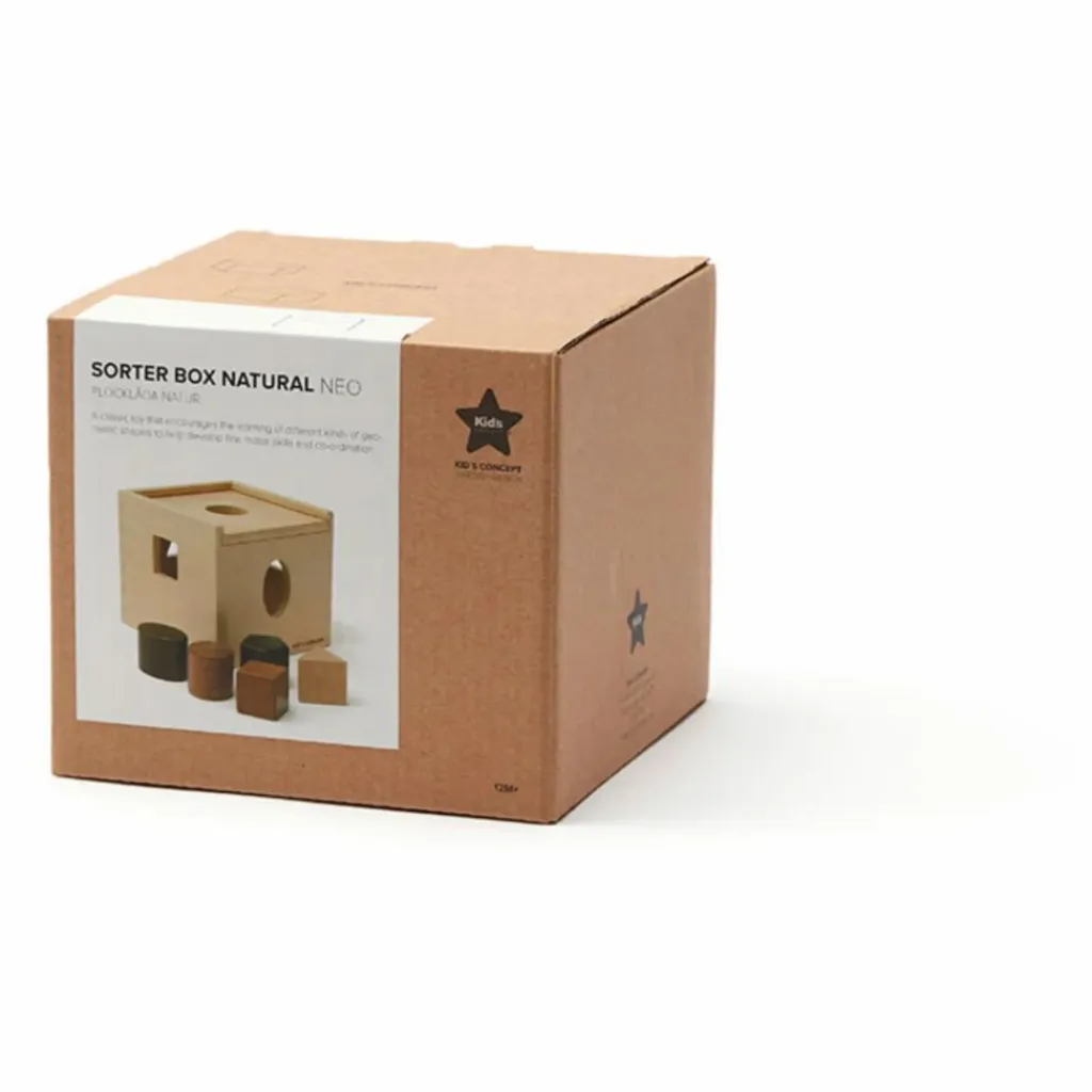 Cette boîte à formes contient cinq formes différentes en bois clair et foncé, de différentes formes, assorties à leur trou correspondant. Le couvercle coulissant se retire pour permettre de retourner la boîte pour la vider. Quand votre enfant a placé toutes les formes dans la boîte, il suffit d’ouvrir le couvercle pour recommencer.
