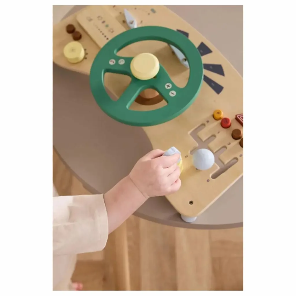 Parfait pour les tout-petits qui explorent le fonctionnement des choses, ce tableau encourage l’interaction avec les boutons, les molettes et d’autres éléments, ce qui contribue à développer la coordination et la concentration des enfants lorsqu’ils font semblant de diriger et de conduire.