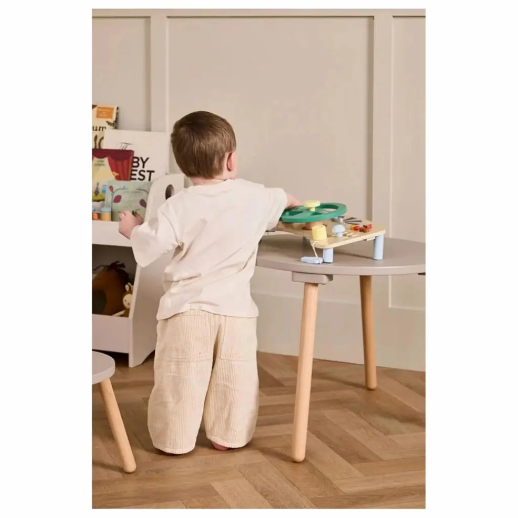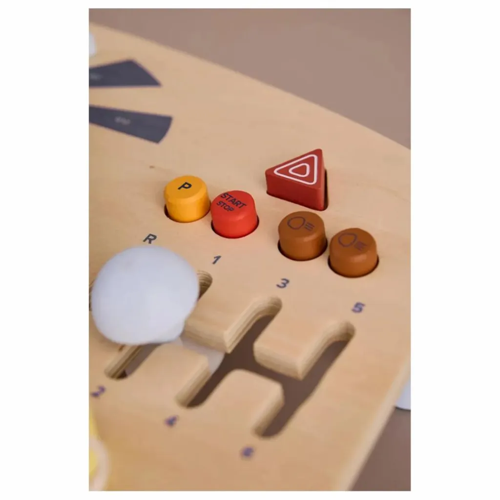 Ce tableau d’activités de conduite en bois, fabriqué à partir de bois certifié FSC, permet à votre enfant de prendre le volant et d’explorer le plaisir de conduire sa propre « voiture ». Avec un volant à tourner, un « GPS » pour suivre les directions et une clé pour démarrer le moteur, les petits conducteurs vont vivre une aventure passionnante. Le tableau comporte également un klaxon sur le volant, des boutons-poussoirs, un compteur de vitesse et un indicateur de niveau de batterie, créant ainsi une expérience de conduite immersive. Et comme il s’agit d’une voiture électrique, il n’y a pas besoin d’essence – juste de quoi s’amuser !