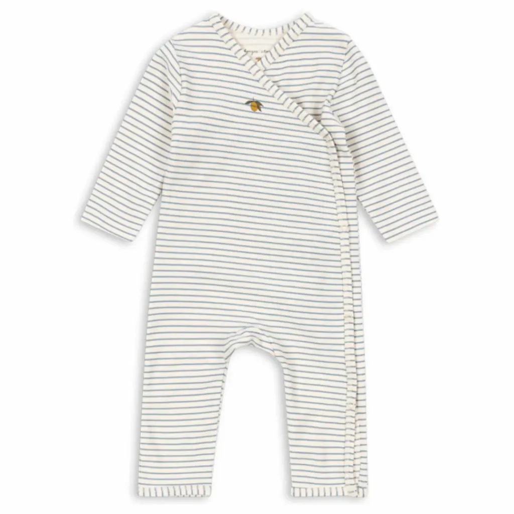 - Une grenouillère douce pour les nouveau-nés, en coton mélangé léger et légèrement extensible. Conçue avec une fermeture enveloppante dotée de boutons-pression le long du corps et des jambes pour faciliter l’habillage.