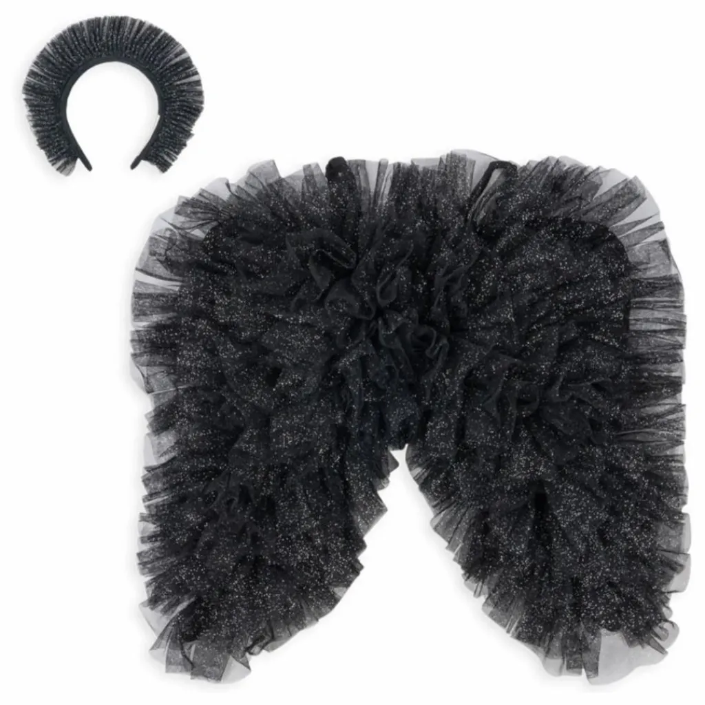 - Costume d’Halloween d’ange noir comprenant un bandeau et des ailes duveteuses avec des sangles élastiques faciles à enfiler.