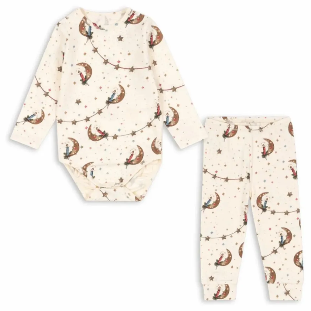 Ensemble de base composé d’un body et d’un legging en coton biologique légèrement extensible.