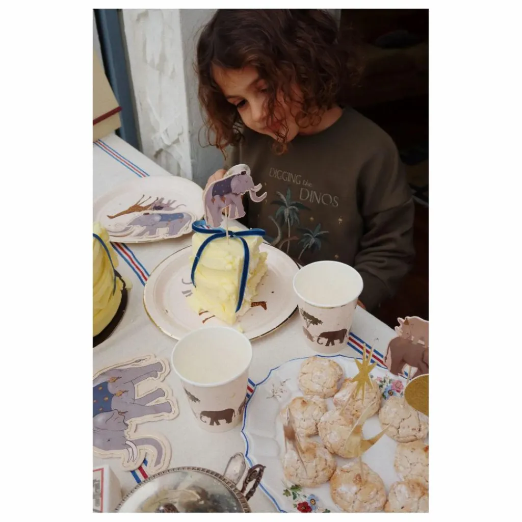 - Contient : 8 gobelets, 8 assiettes, 16 serviettes, 1 guirlande et ficelle en coton, 1 ballon, 12 toppers de gâteau