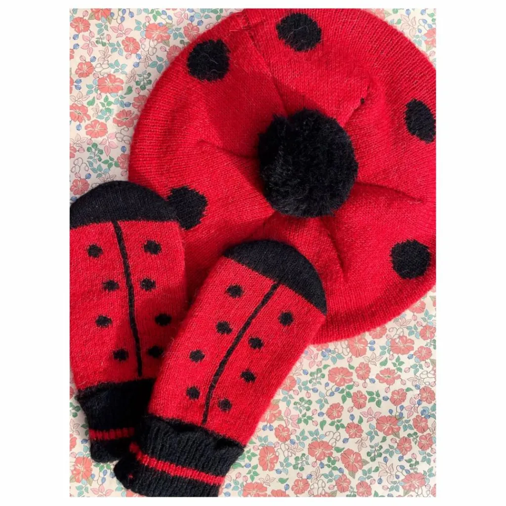 - Moufles en laine, douces et chaudes, aux couleurs classiques des coccinelles.