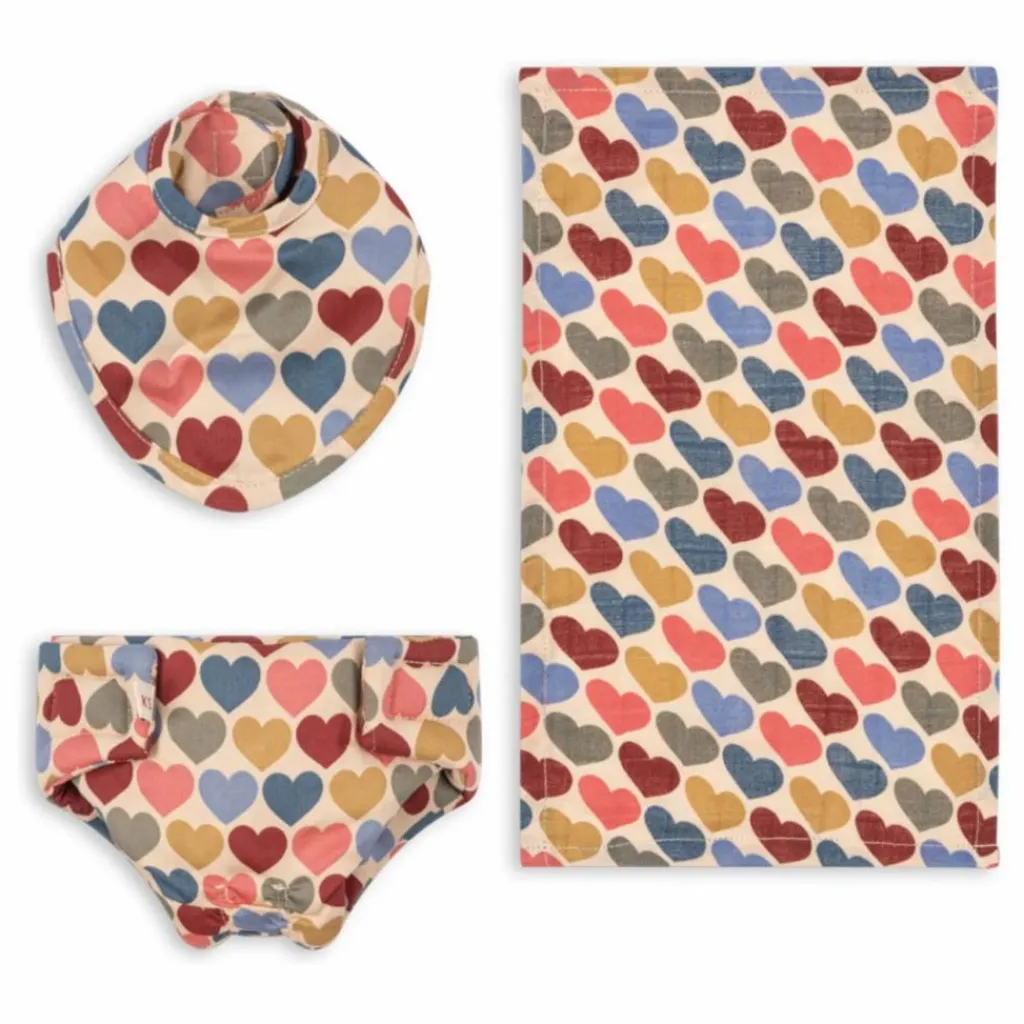 - Une couche avec fermeture velcro, un bavoir, une mousseline et un sac