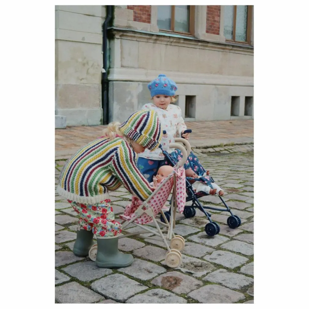 - Poussette pour poupée conçue avec un harnais, un sac de transport et des roues doubles sur les quatre pieds pour plus de stabilité. Le tissu est amovible. Entièrement assemblée, elle est facile à plier et à ranger.
