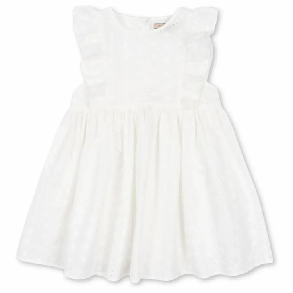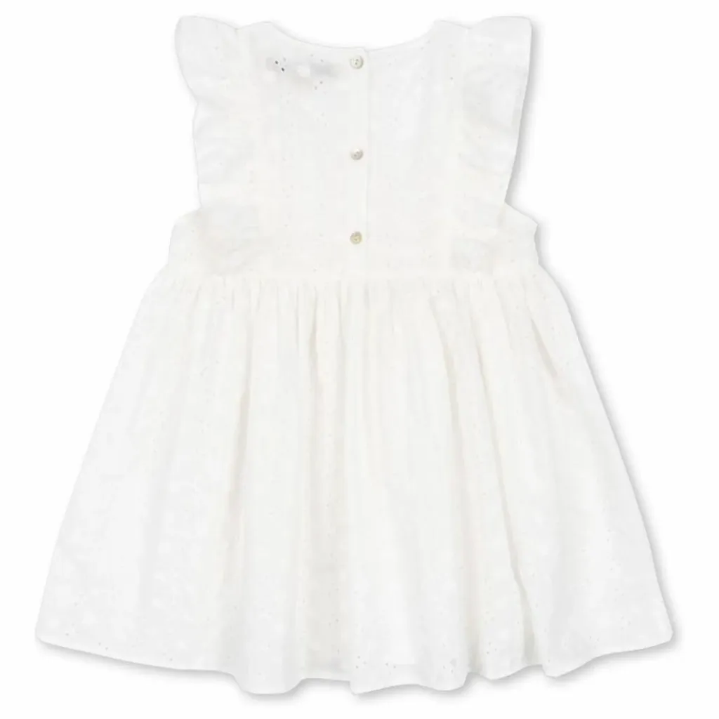 - Robe sans manches en broderie anglaise avec volants sur les épaules. Matière : 100% coton.
