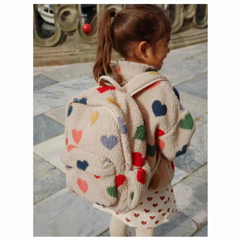 - Sac à dos souple en polaire duveteuse. Conçu avec un grand compartiment intérieur, des poches latérales, une poche zippée à l’avant, des bretelles dorsales réglables et une sangle de poitrine pour un soutien supplémentaire.