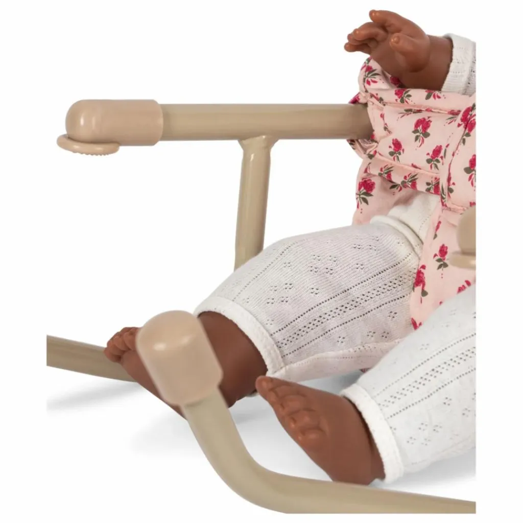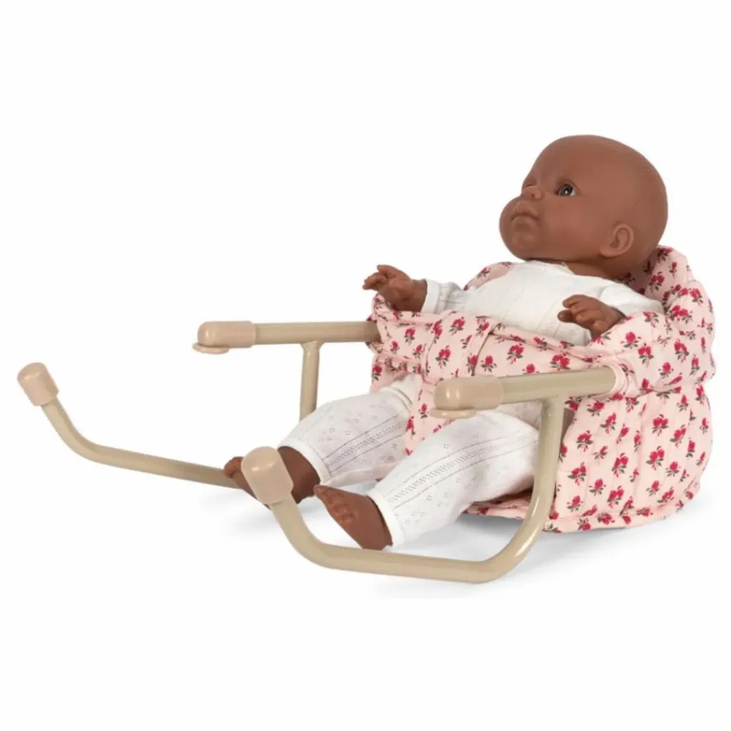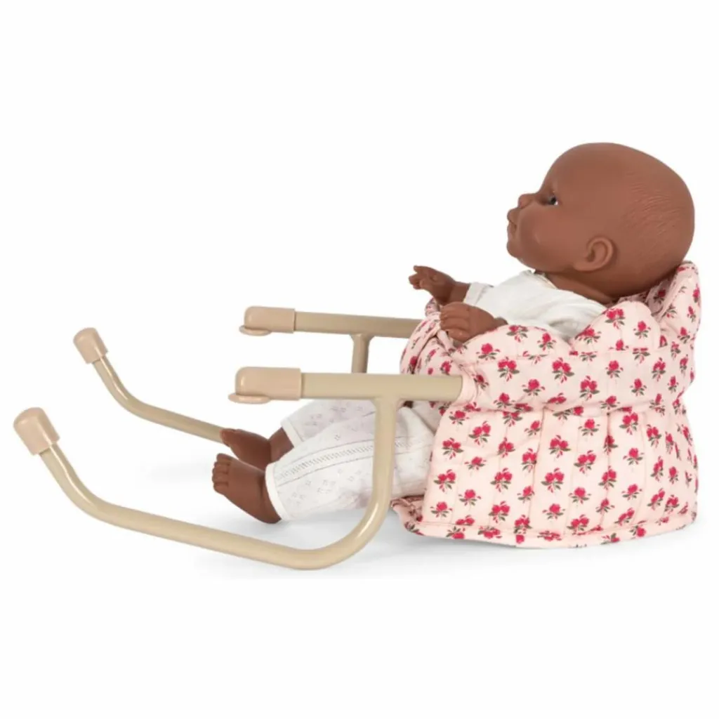- Chaise de table pour poupée fabriquée en 100% coton matelassé avec un cadre en fer. Se fixe facilement à la table. Conçue avec des détails de bordures festonnées.