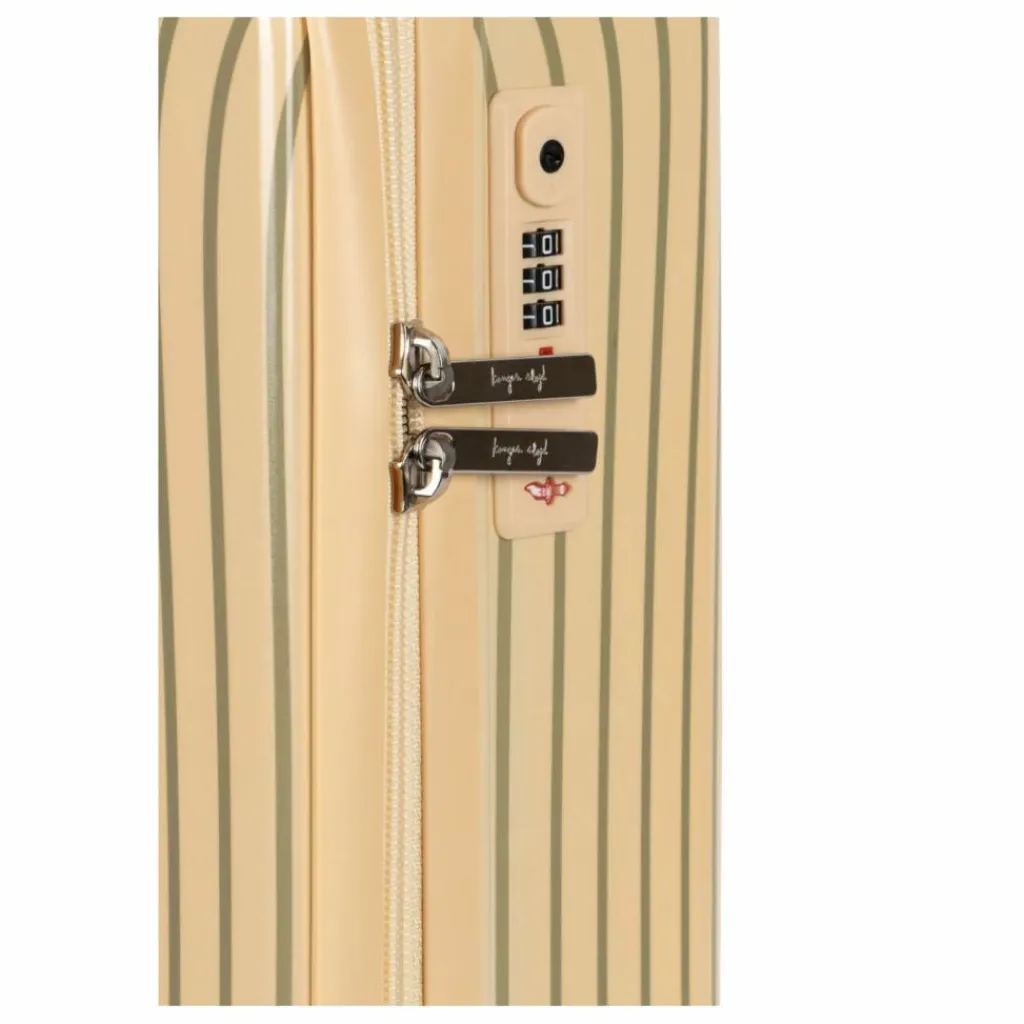 Une petite valise légère au format bagage cabine. Fabriquée avec une coque rigide, quatre roulettes doubles pivotantes à 360 degrés et une serrure TSA LOCK® intégrée et codée. La valise est doté d’une poignée supérieure pratique et d’une poignée télescopique réglable en aluminium à 3 niveaux. Conçue avec un compartiment inférieur avec des rubans et un compartiment supérieur zippé avec une poche filet zippée.