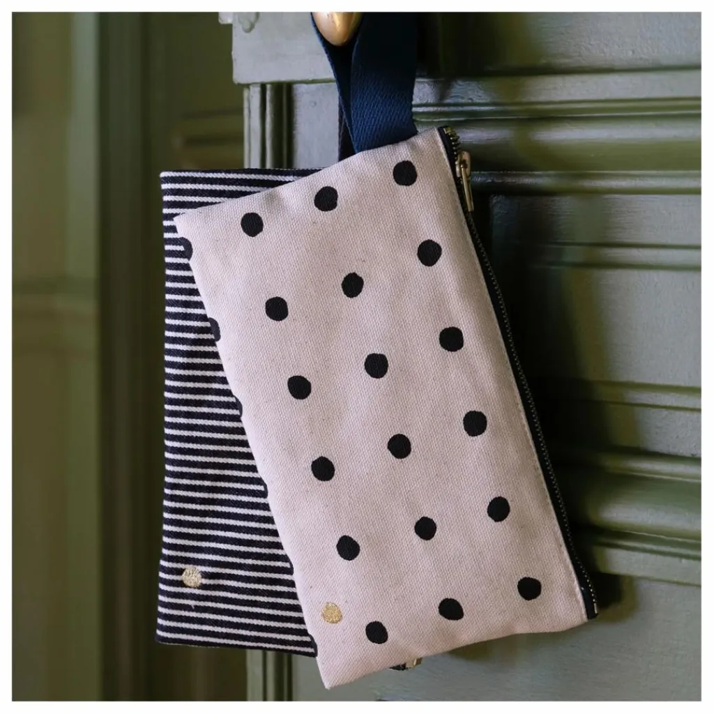 - Avec son format malin et son motif à pois signature, la pochette à anse Mio s’impose comme l’accessoire nomade par excellence. Compacte mais astucieuse, elle se glisse partout et vous accompagne aussi bien au quotidien qu’en voyage. Sa sangle douce et résistante, s’enfile autour du poignet pour un porté pratique et léger, ou s’attache facilement à un sac pour garder vos essentiels toujours à portée de main. Fabriquée en coton 100% biologique et doublée d’un intérieur imperméable enduit, elle résiste aux taches et se nettoie sans effort. Passez-la en machine à 30°C, et elle retrouve toute sa fraîcheur.