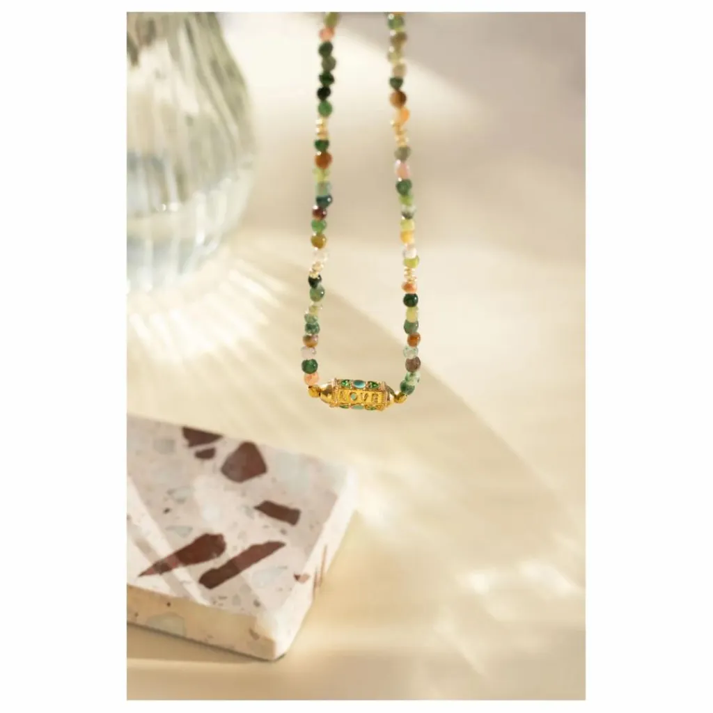 - Contient : 1 pendentif love doré à l’or fin, des perles à facettes d’Agate naturelle, des perles intercalaires facettées, 1 fermoir mousqueton doré à l’or fin, 1 double anneau fermé, du fil miyuki nylon, un livret explicatif
