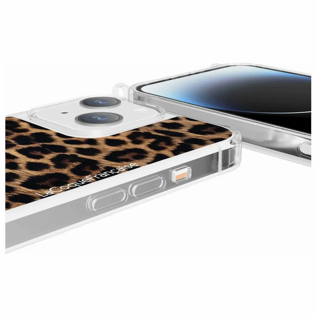 - Coque transparente anti-choc avec anneaux transparents en silicone avec impression leopard