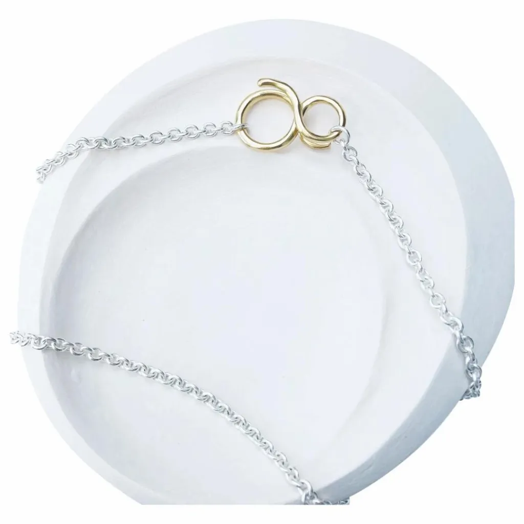 - LE FIL est un collier court avec une chaîne forçat ronde.Minimaliste, il peut se porter seul ou peut aussi accueillir des accumulations de médailles.Il se ferme avec le petit infini, un fermoir 8 en forme de porte-clé qui permet aussi de clipser des médailles.