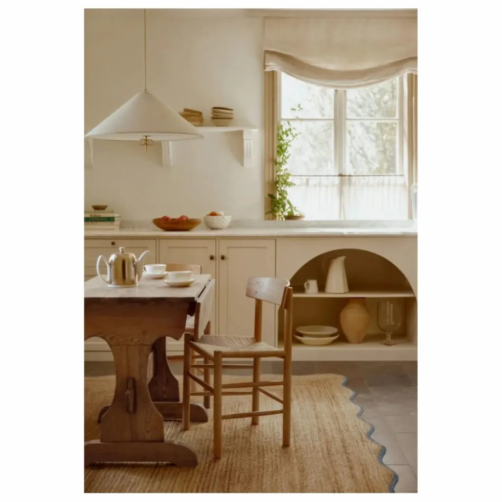 - Ce tapis allie un design ludique à l’élégance italienne. Le tapis présente un bord doux et festonné qui ajoute une touche subtile mais accrocheuse au tissage classique du jute. Pour obtenir cette forme fluide, le jute est tressé et enroulé en forme de cercle, puis terminé par une bordure raffinée. Les tapis en jute sont écologiques et biodégradables, ce qui en fait un choix durable pour toute maison. Ils ajoutent un charme naturel et rustique tout en étant durables et faciles à entretenir.