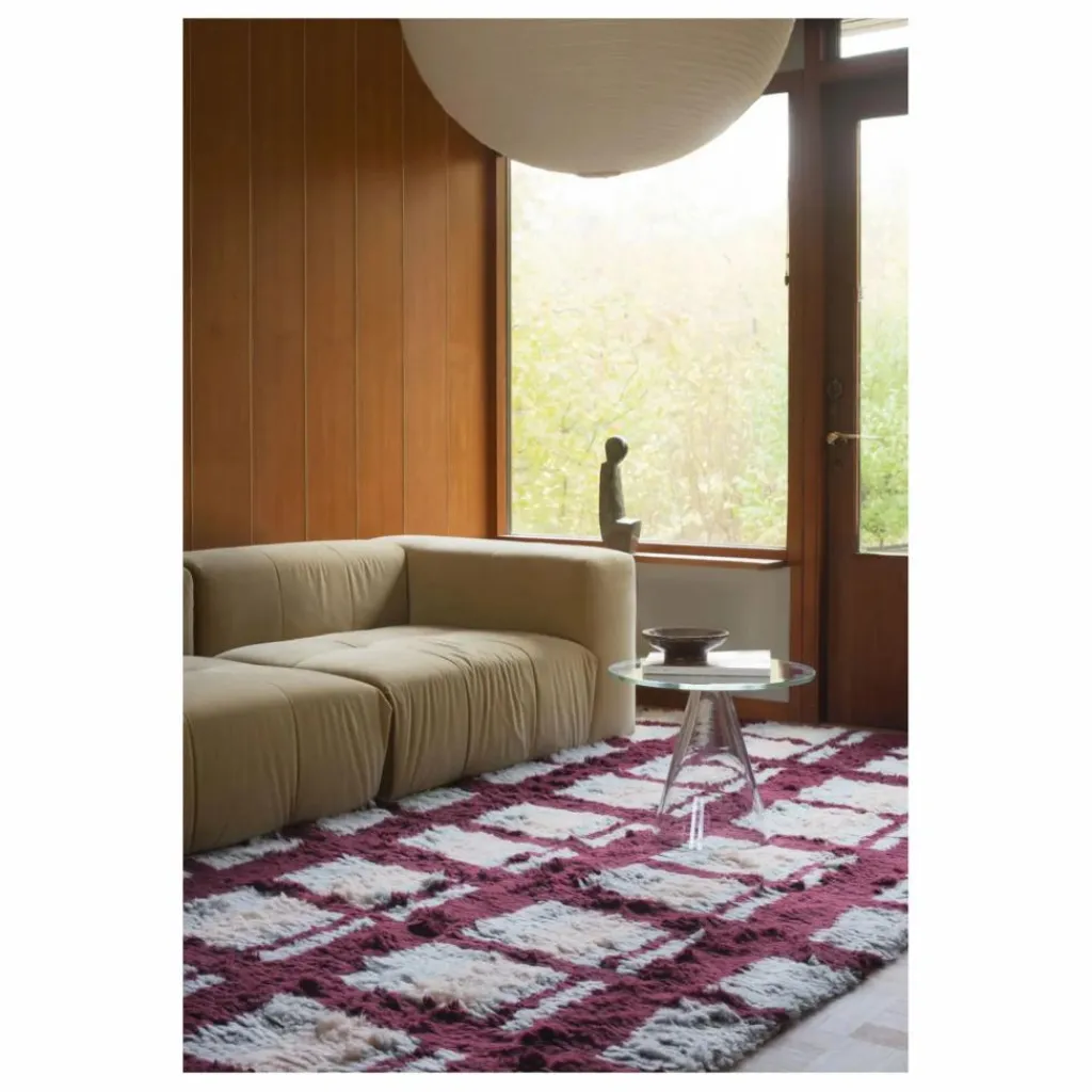 Série d’artistes Evelina Kroon : Volume doux, jeu graphique et retour du tapis rya – Ce tapis artisanal est composé à 100 % de laine néo-zélandaise et tissé à la main en longues piles hirsutes de rya, mettant l’accent sur la tactilité, le volume et le rythme, tout en offrant une interprétation contemporaine de l’artisanat scandinave traditionnel.