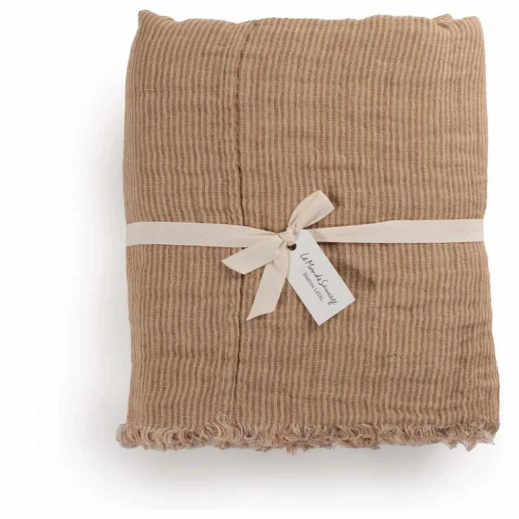Le plaid Okapi porte bien son nom, avec un côté rayé et l’autre uni. Jouez de ses rayures en repliant le revers ; ses fines lignes apportent un effet de texture et de couleur. Ses tonalités fraîches et printanières sont la promesse de l’arrivée des beaux jours.