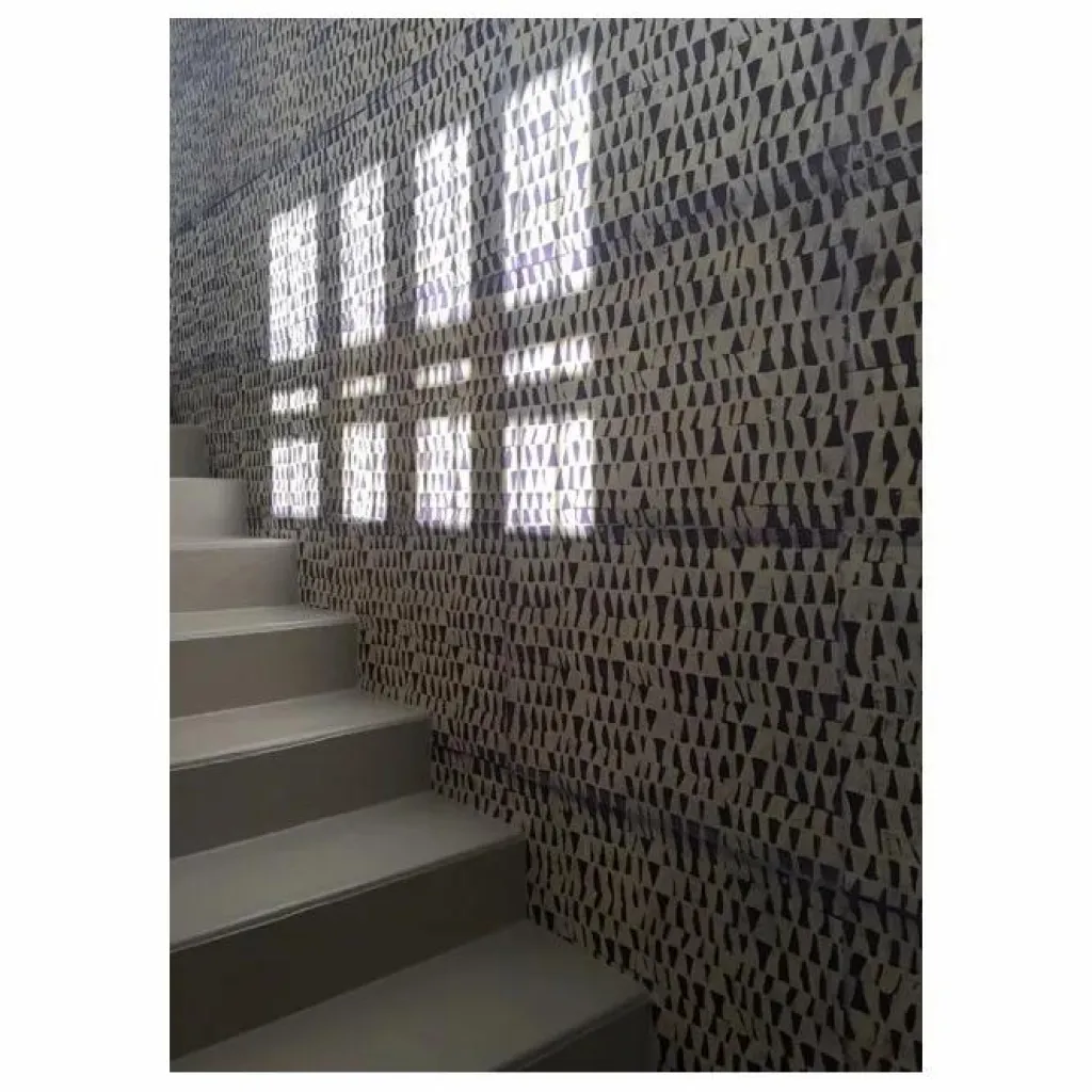 - À la différence d’un papier peint classique, la combinaison de ces feuilles irrégulières donnera un effet original, à poser sur une surface complète, ou en touche pour créer un motif. La pose du papier se fait sans tenir compte du raccord et en gardant le bord frangé, il est souhaitable de voir la délimitation de chaque feuille, ces éléments sont la signature si particulière de ce papier peint.