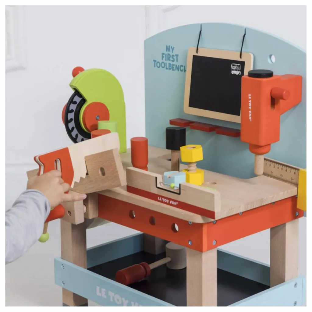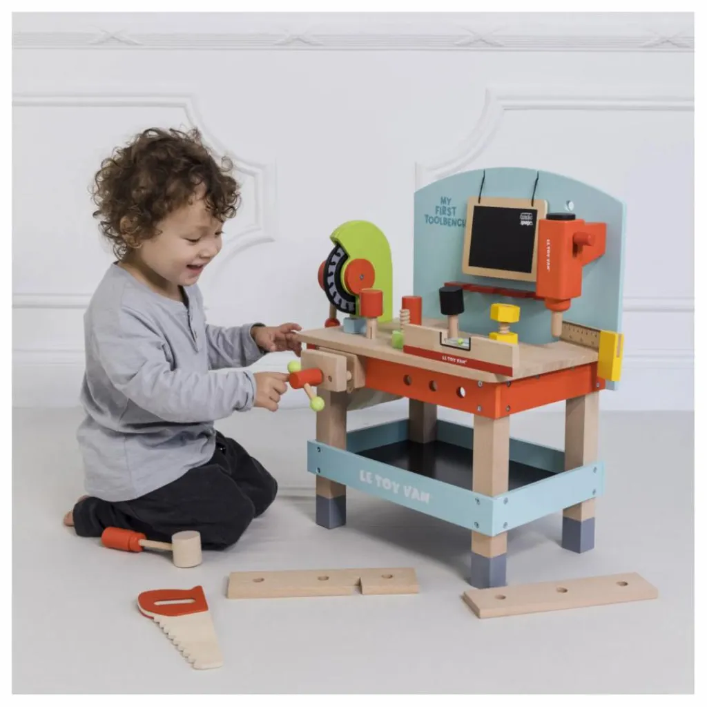 Mon premier atelier constitue un merveilleux premier banc de travail pour les petits apprenants. Il possède une étagère de rangement pratique et deux planches de bois pour visser les écrous et les boulons.
