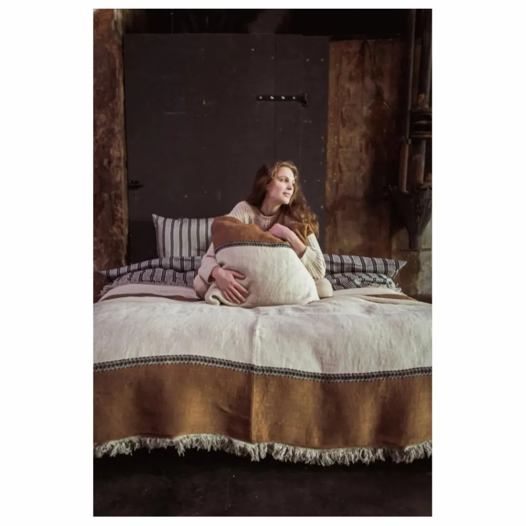 Les couvre-lits ont un ourlet central et gardent les lisières d’origine.