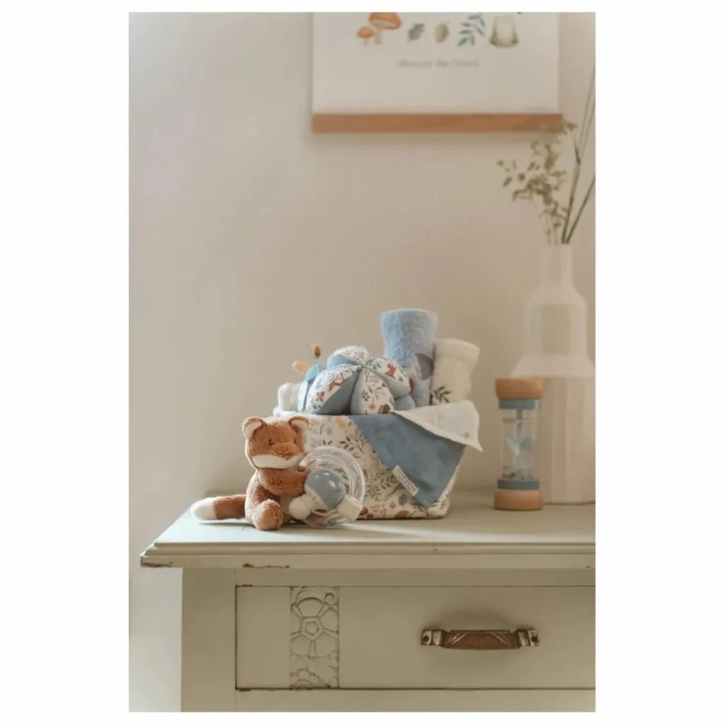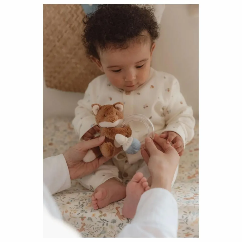 - Cet adorable renard, avec sa fourrure douce et son champignon à caliner, stimulera l’éveil des sens de votre bébé. L’anneau transparent contient 3 petites perles colorées qui produisent un doux cliquetis pour stimuler l’ouïe de votre enfant. Ce hochet renard éveillera la curiosité et les sens de votre bébé, tout en favorisant sa coordination main-œil.
