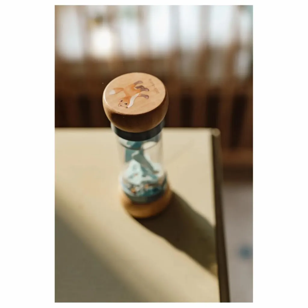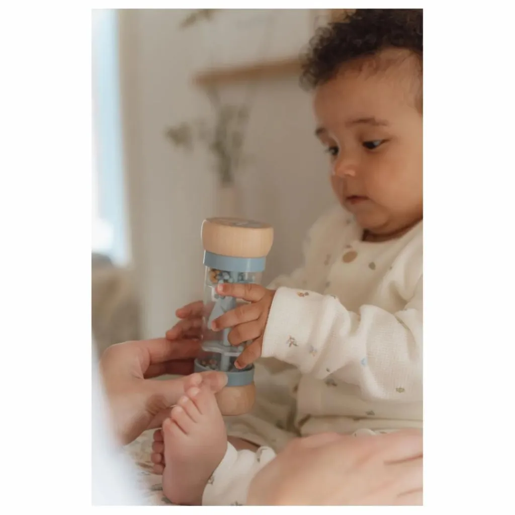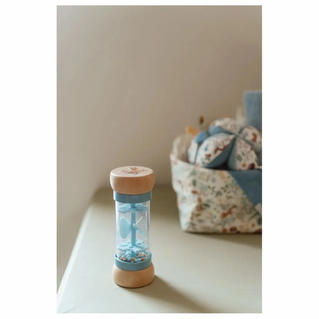 - Retourne le hochet et écoute les sons reposants émis par les billes qui se déplacent d’un côté à l’autre du bâton de pluie. Il stimule le développement sensoriel et le talent musical de bébé. Les billes, de 3 couleurs différentes, tombent dans de petites ouvertures dans le tube et font tourner l’hélice, ce qui émet un son agréable. Le hochet bâton de pluie est conçu pour les petites mains. Le dessus et le dessous en bois sont décorés d’une illustrations sur le thème de la collection Forest Friends.