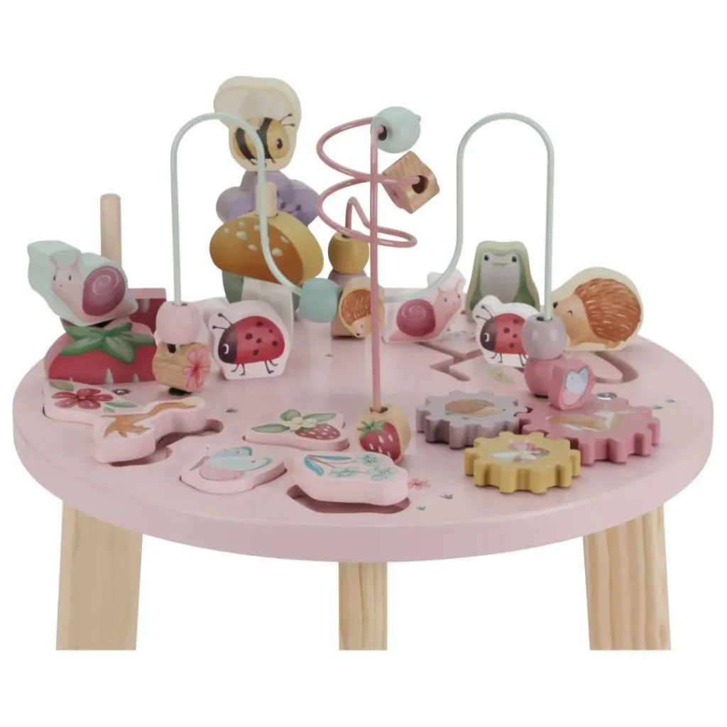 - Levez-vous et jouez! Découvrez toutes les activités que cette table a à offrir. Déplacez les perles d’un côté de la spirale à l’autre.