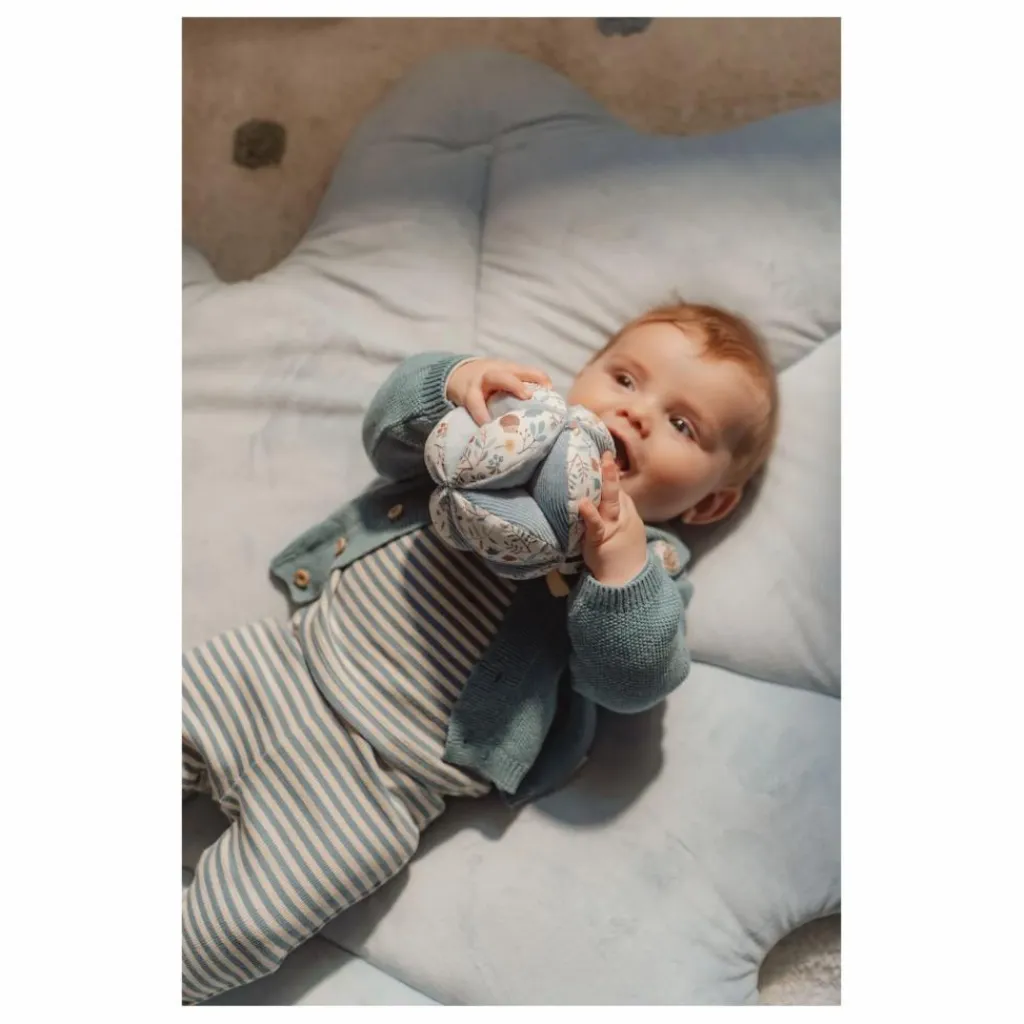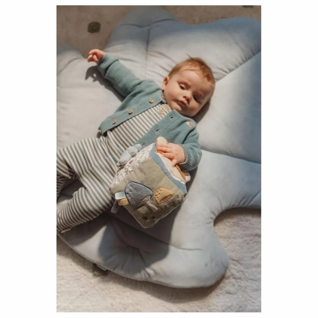 - Chaque jour est une aventure nouvelle pour un petit enfant couché sur ce tapis en forme de feuille. Le tapis bleu a été doté de deux grandes arches en velours côtelé d’où pendent 5 peluches différentes. Le renard, le hibou, le champignon jaune et bleu et la feuille aident les petits à développer les capacités sensorielles tout en stimulant la coordination main-œil.