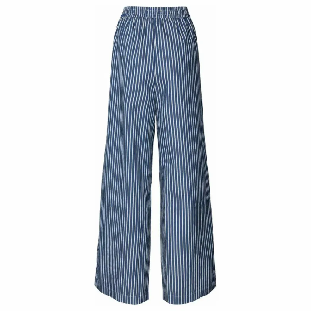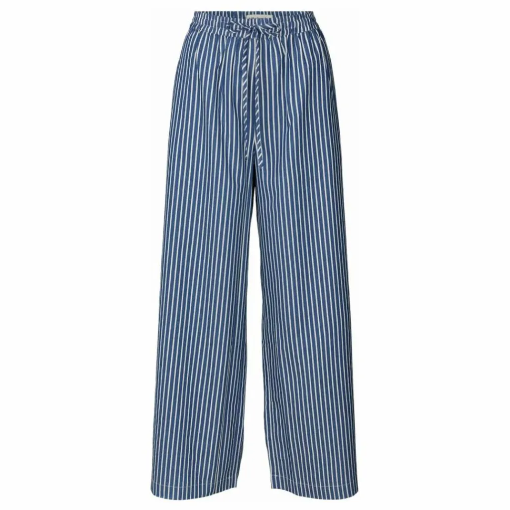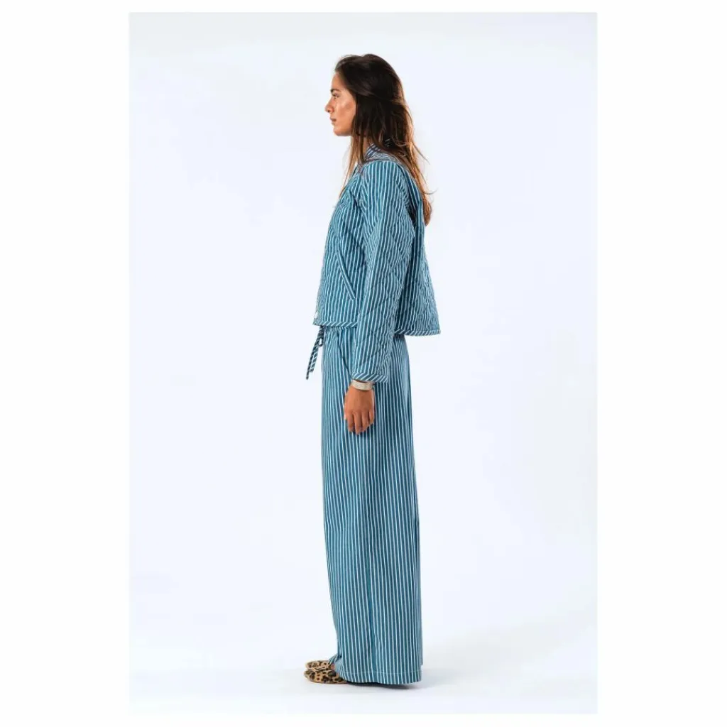 - – Rayures classiques bleu/blanc pour un look intemporel – Taille élastique avec cordon de serrage pour un confort maximal – Coupe large et décontractée qui crée un drapé élégant – Léger et respirant, parfait pour la vie de tous les jours et les voyages – Parfaitement assorti au gilet CairoLL dans la même matière pour un ensemble stylé