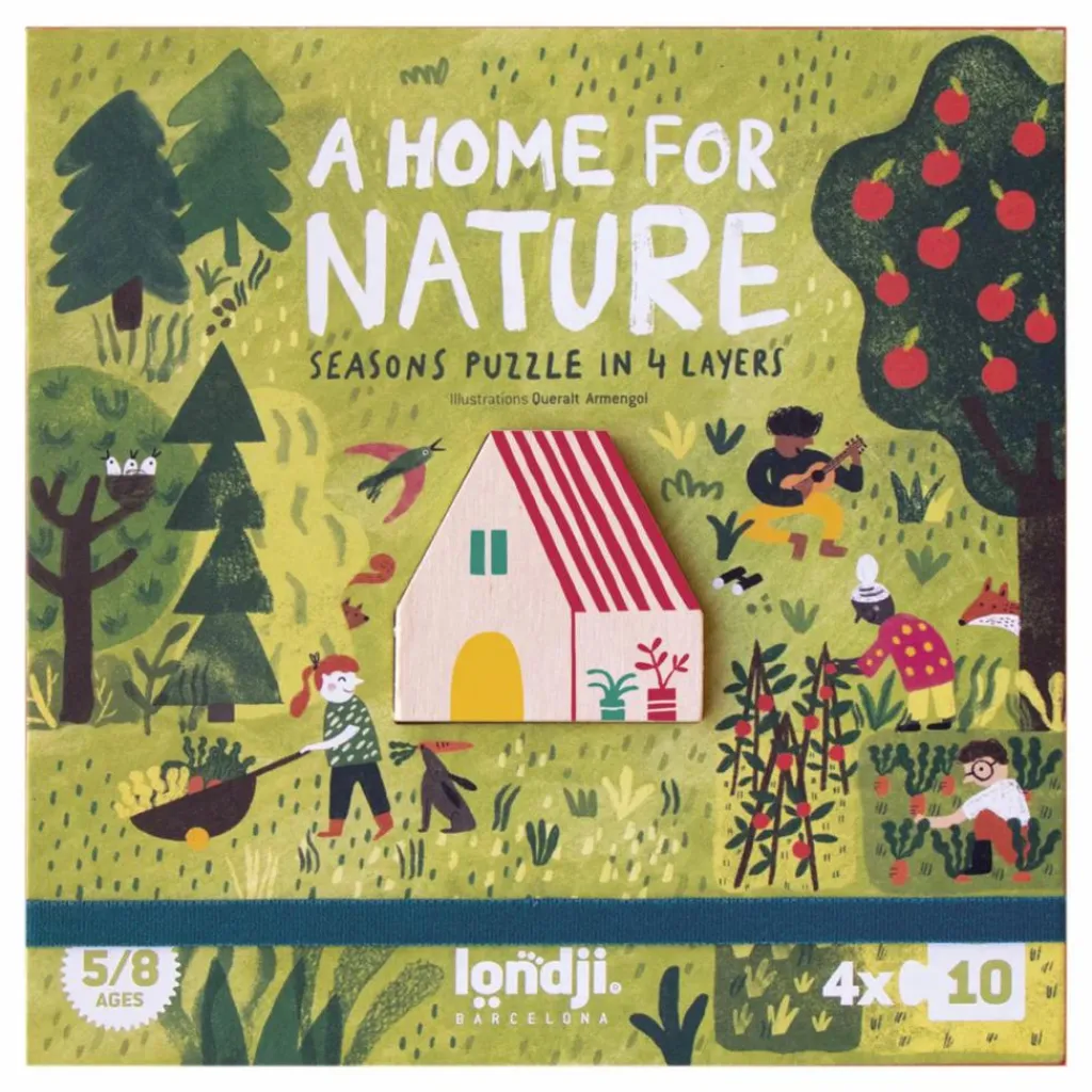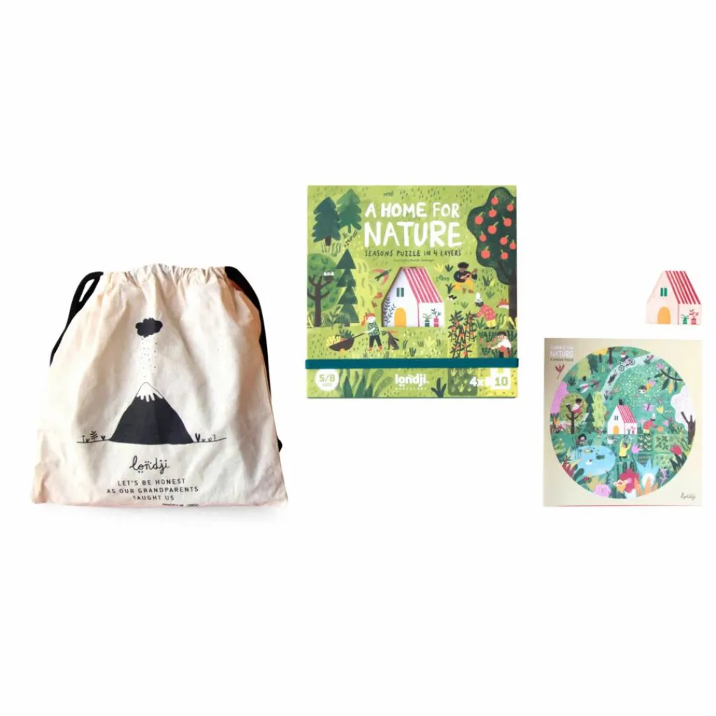 - 4 x 10 pièces, 1 maison en bois, 1 sac en jute