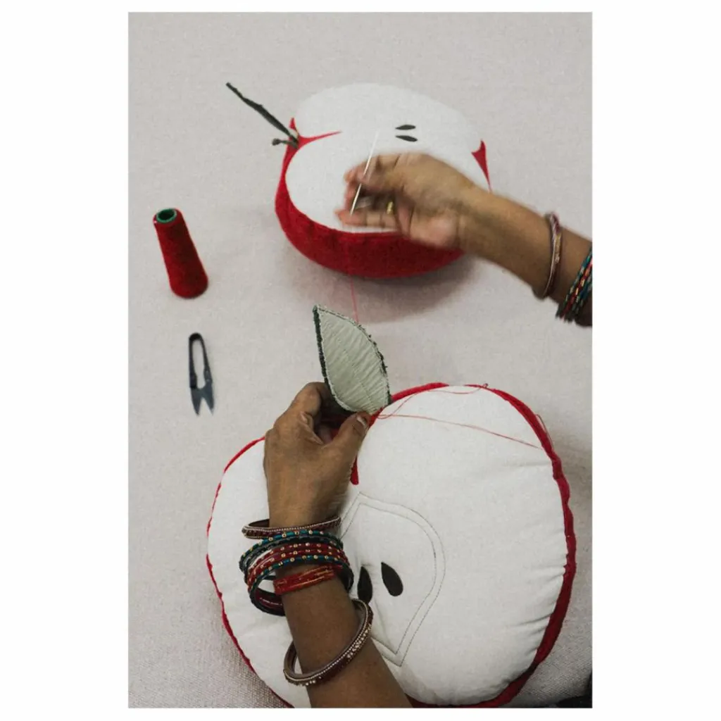 - Un joli coussin pour le repos ou le jeu des petits ! Ce coussin en coton artisanal en forme de demi-pomme, orné d’une feuille en tissu, apporte une touche de fraîcheur et d’inspiration fruitée à la chambre de vos enfants. Associez-le à notre collection Ferme pour une touche champêtre dans votre intérieur !