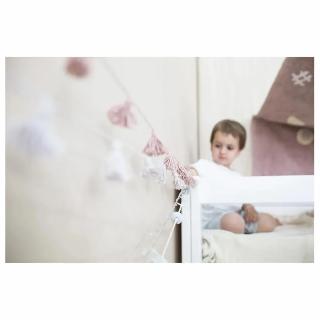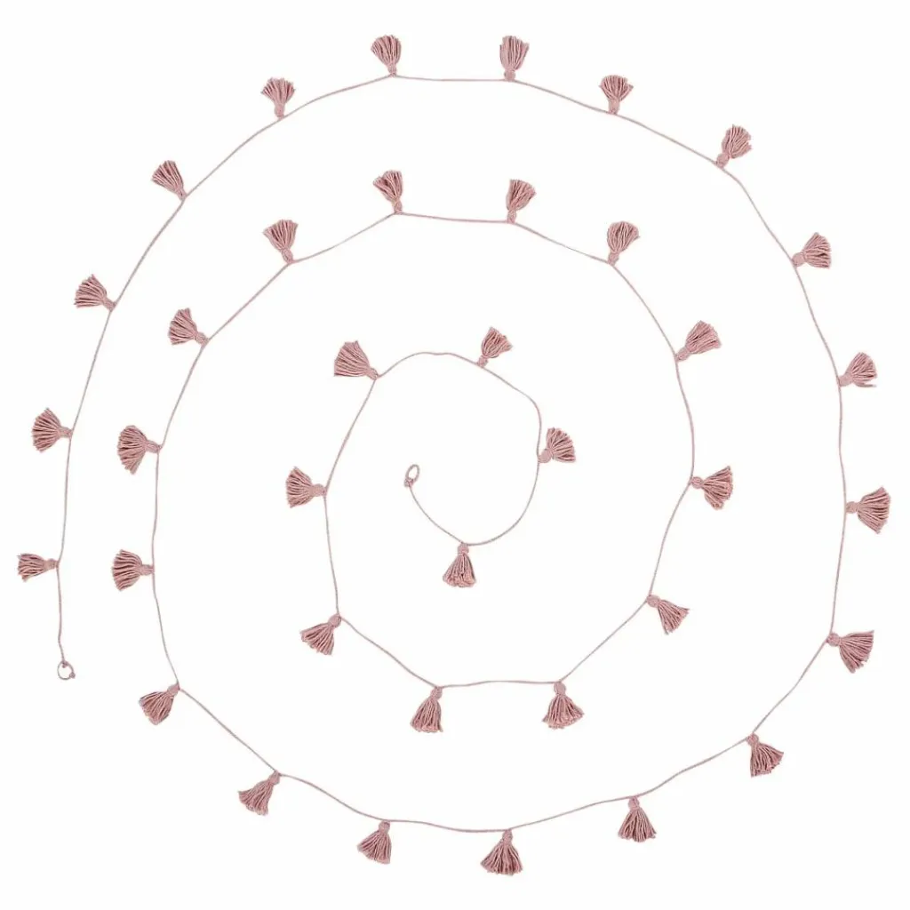 - Guirlande en coton tressé de couleur vintage nude, parfaite pour décorer la chambre de vos enfants. Elle est composée de mini pampilles en coton de couleur assortie. Elle est présentée enroulée dans une boîte cadeau en papier kraft.
