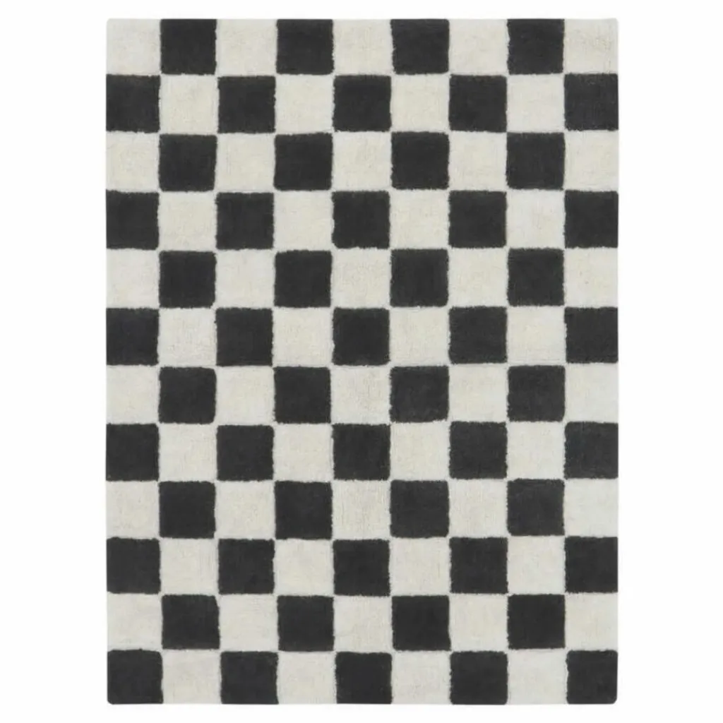 - Inspiré des sols en céramique vintage, le tapis Kitchen Tiles présente un motif à carreaux jouant avec des couleurs contrastées naturelles et gris foncé. Le tapis utilisait notre base en mélange RugCycled / toile naturelle, laissant la base légèrement visible entre les carrés colorés simulant les carreaux de la cuisine.